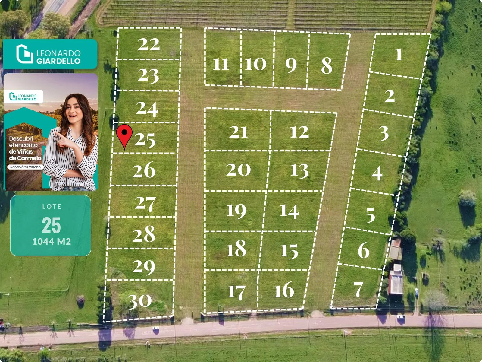 Características:- Lote 25 de 1044 m2 con orientación norte- De fácil acceso a metros de ruta 21- Zona muy solicitada para edificar- Sobre Calle Dr. Eduardo Irastorza entre Ruta 21 y Calle BrasilIdeal inversión para edificar en un entorno natural, lejos del ruido de la ciudad pero cerca de todos sus servicios.Viñedos y hermosos atardeceres hacen de este fraccionamiento un entorno único para construir la propiedad de tu sueñosFinanciación Propia / Precio para Inversor