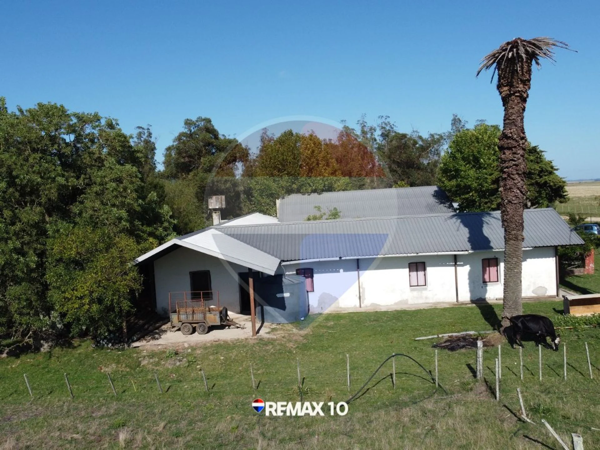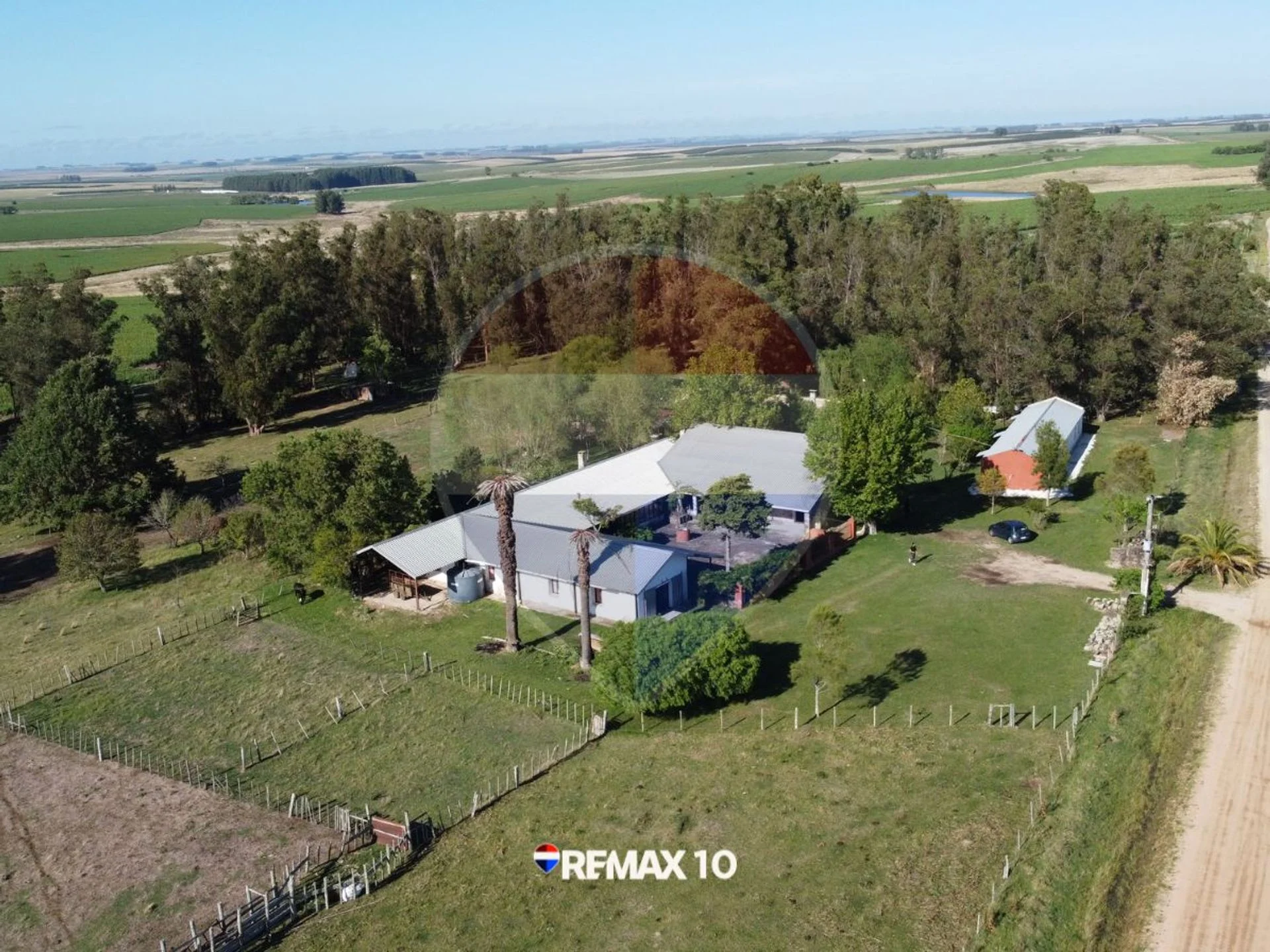 El predio cuenta con monte de eucaliptos y sectores delimitados aptos para ganado, ofreciendo múltiples posibilidades productivas.