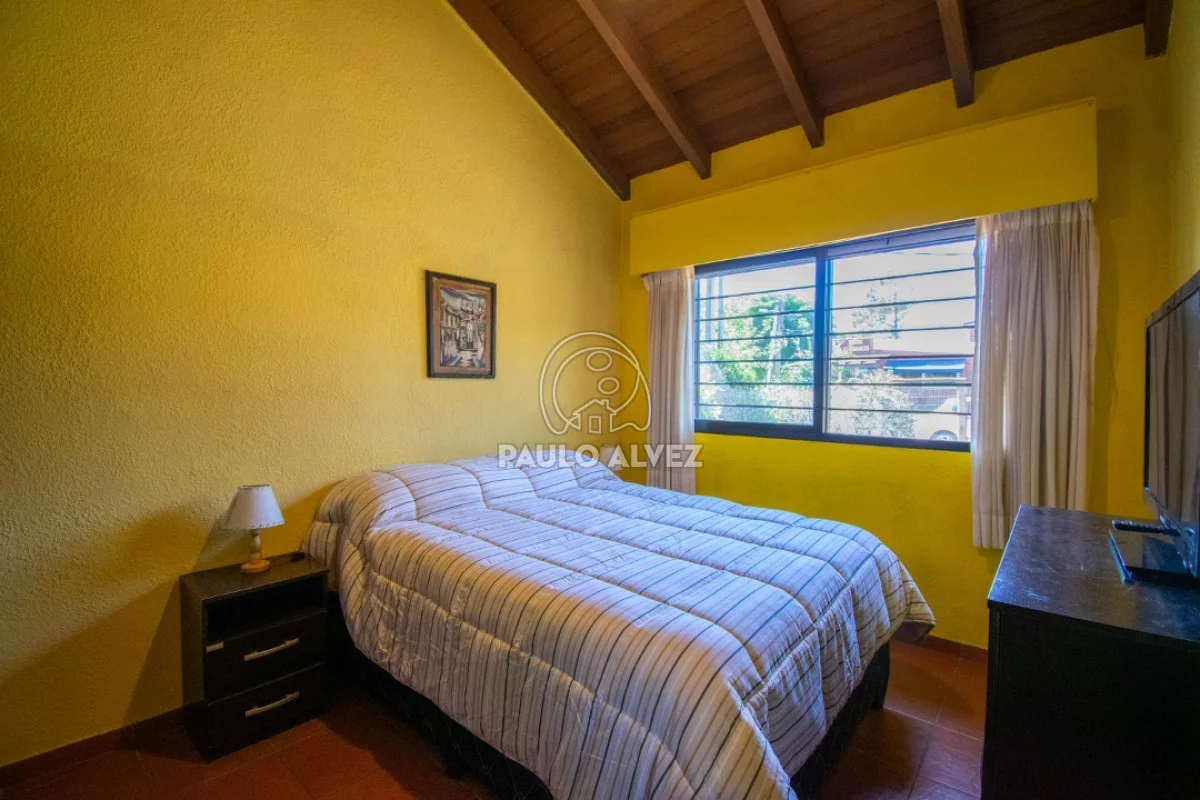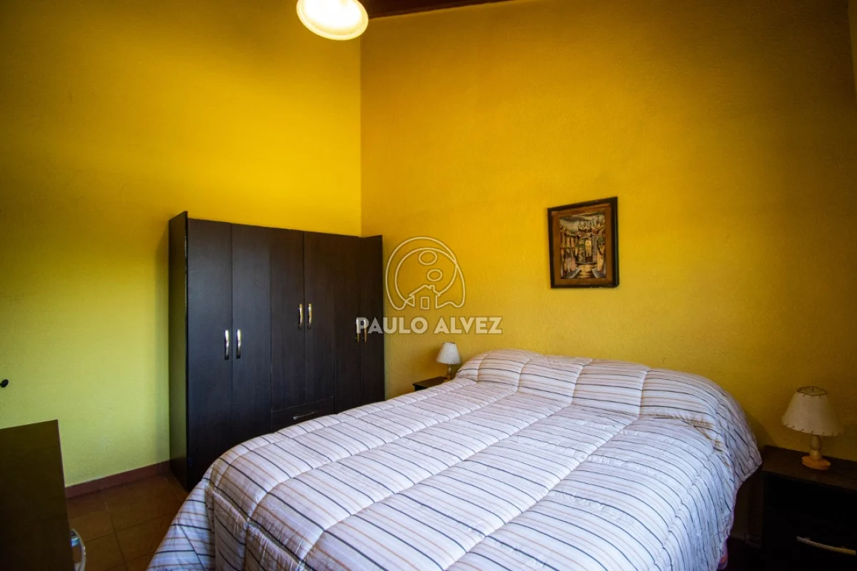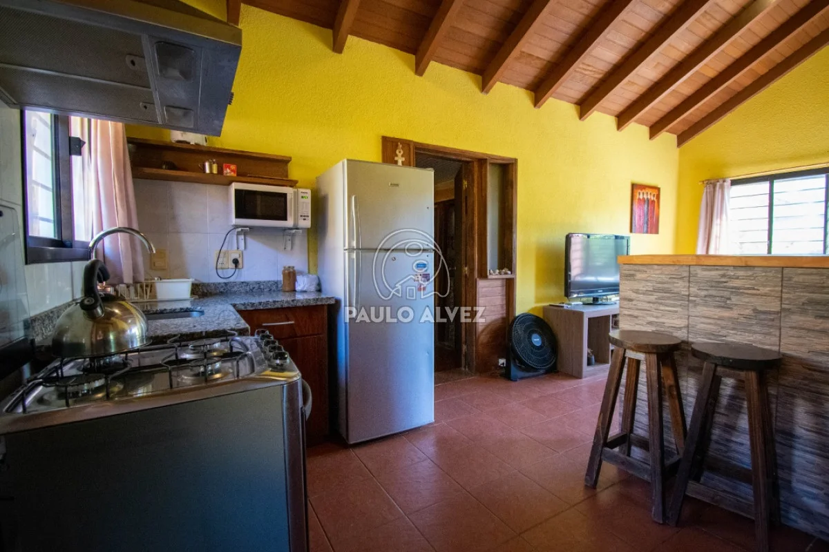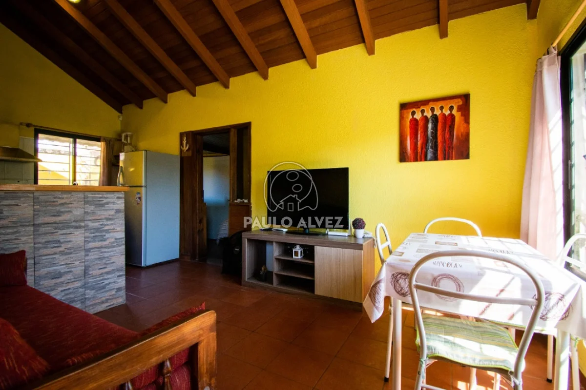 Cómoda propiedad ubicada en balneario Playa Grande a solo 150 metros de una de las playas más lindas de la zona y a cinco minutos del centro de Piriápolis. Rodeada de un entorno agradable y de excelentes propiedades. Construcción tradicional de 34 m², con techo de tejas y cielo raso de madera, en régimen de propiedad horizontal. Emplazada sobre un predio esquina de 398 m² , totalmente cercado. Distribuida en una sola planta, luminoso living comedor, cocina definida por barra desayunador, dos dormitorios, uno de ellos con baño en suite. Al fondo, amplio jardín con parrillero techado y cochera. Consulte por más información.