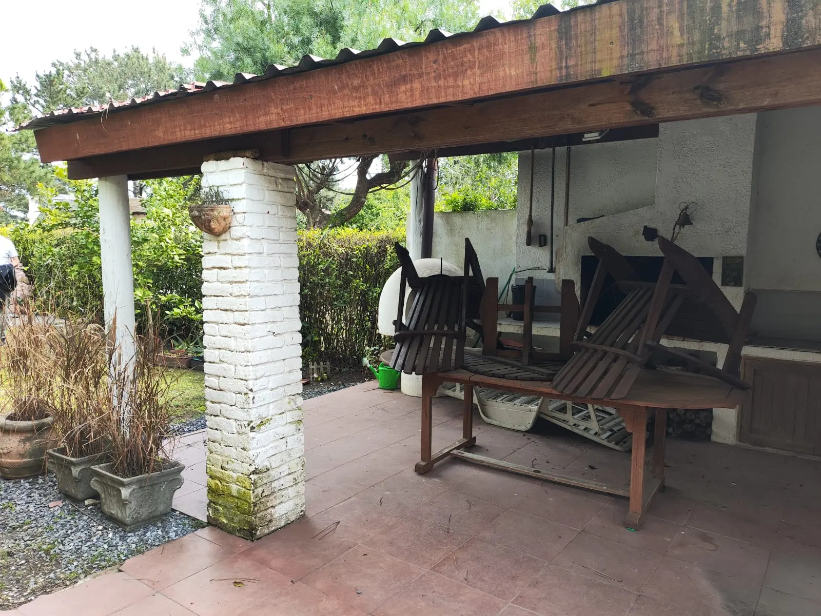 Descubra esta encantadora cabaña, una joya construida en propiedad horizontal, estratégicamente ubicada a pasos de la playa. Rodeada por un exuberante jardín que invita a la relajación, la propiedad ofrece una cómoda cochera para dos vehículos. En su interior, un acogedor living con chimenea crea el ambiente perfecto para disfrutar de momentos inolvidables. Cuenta con dos dormitorios y medio, ideales para el descanso. La moderna cocina americana se integra armoniosamente con un estar, también equipado con una estufa a leña, proporcionando calidez y confort. El exterior es un verdadero oasis: una excelente barbacoa techada con parrillero y horno de barro es el escenario ideal para reuniones. El fondo, de un verde vibrante, alberga una refrescante piscina y una variada colección de árboles y plantas, creando un entorno de privacidad y serenidad.