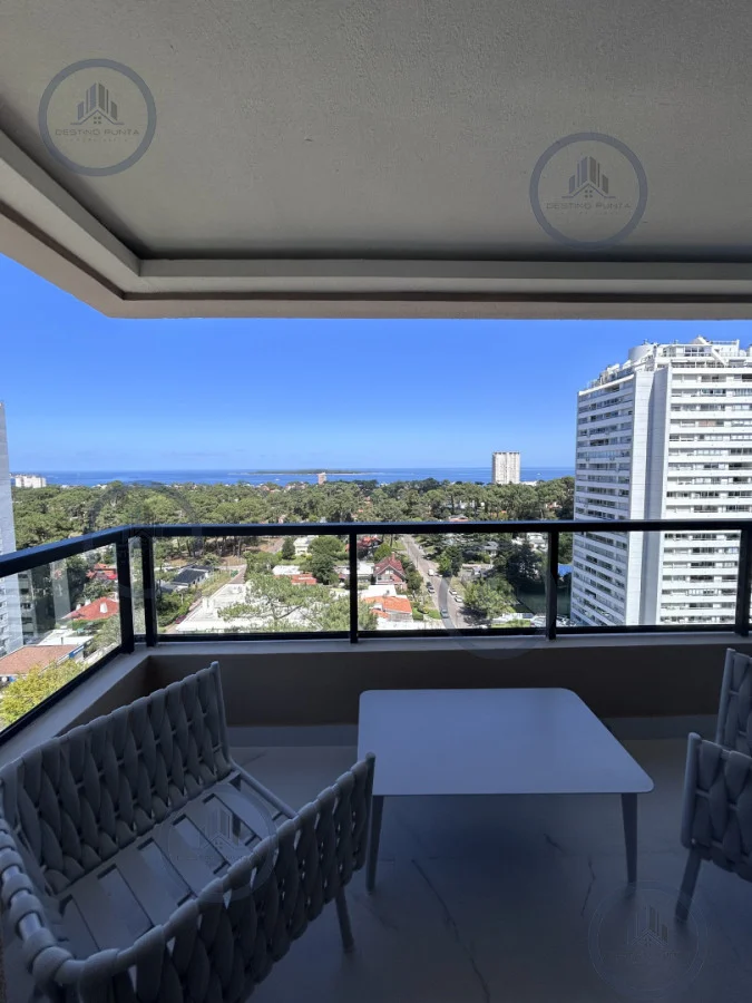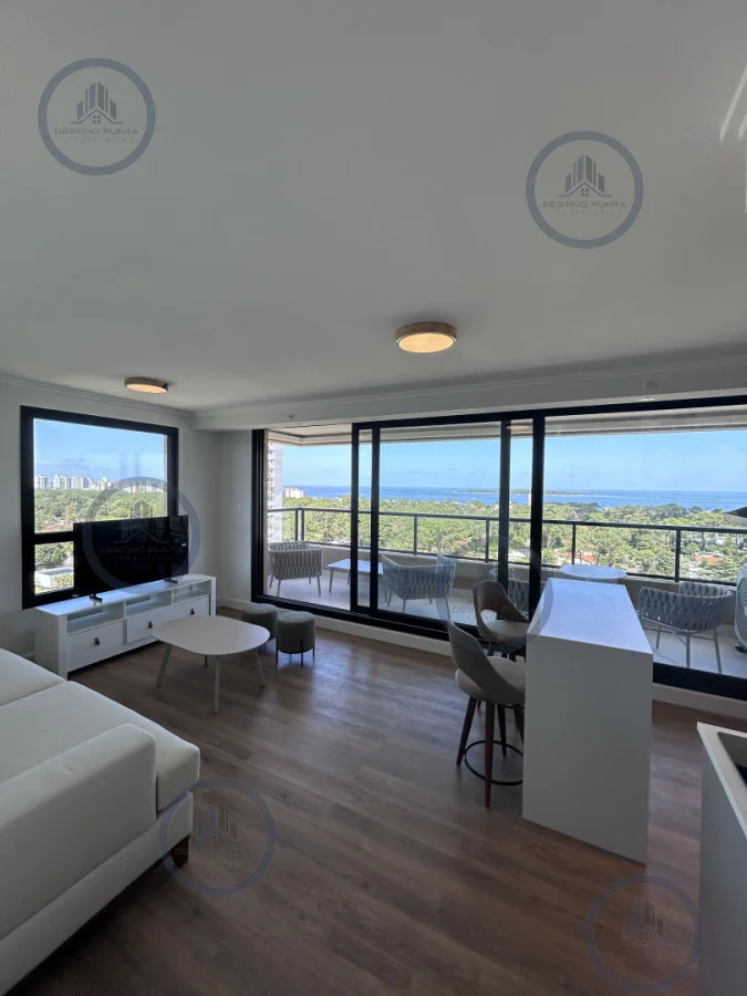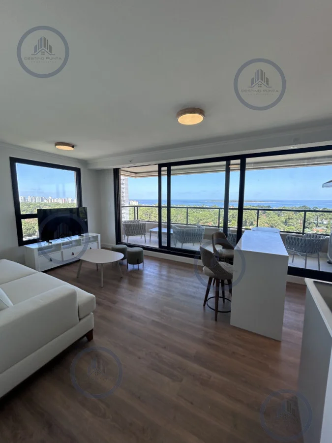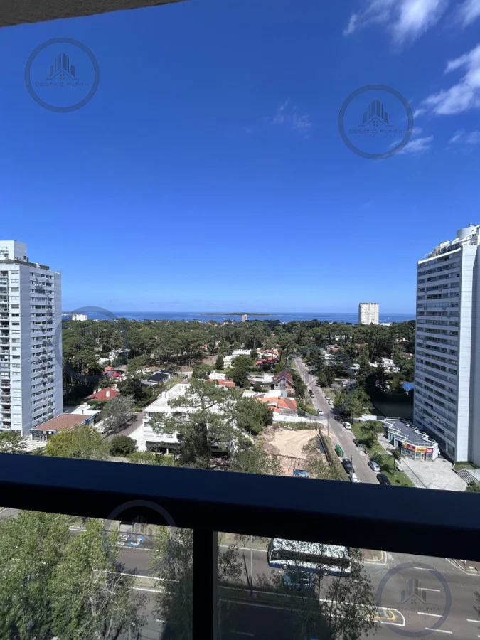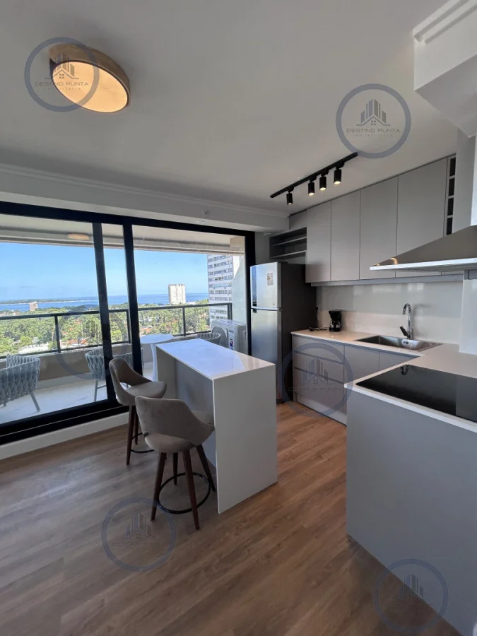 Apartamento amplio, living-comedor, con cocina integrada y balcón, vista despejada al mar.