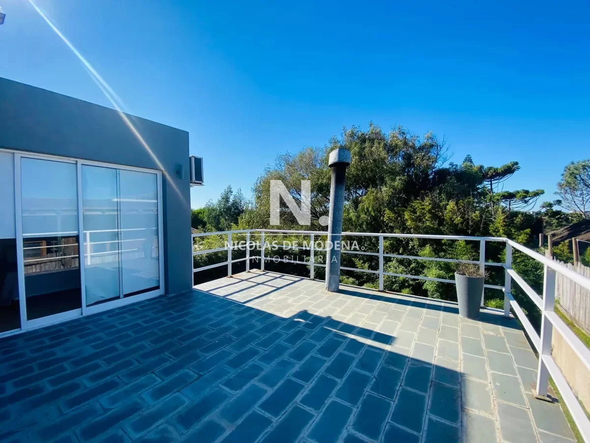 Planta baja: Amplio living comedor con estufa a leña, integrado a galería transitable y techada. Barbacoa techada con parrillero. Cocina integrada al comedor dividida con isla, equipamiento completo. baño social y lavadero independiente. Planta alta: Cuenta con tres dormitorios y dos baños, distribuidos de la siguiente manera. Dormitorio principal en suite con jacuzzi y aire acondicionado. Dormitorio secundario con cama matrimonial y aire acondicionado. Tercer dormitorio equipado con dos sommier de una plaza Baño completo Amplia terraza con vista al mar. No dude en consultar. Referencia Interna : Tera-18700