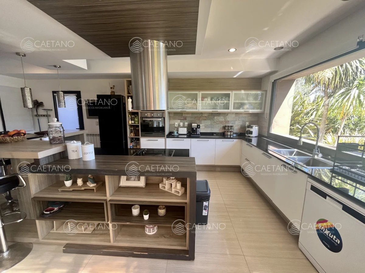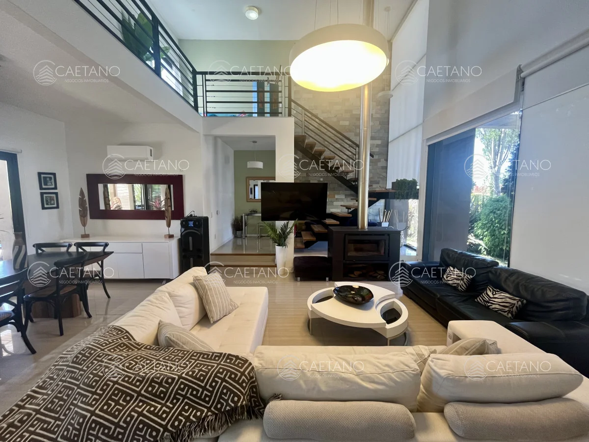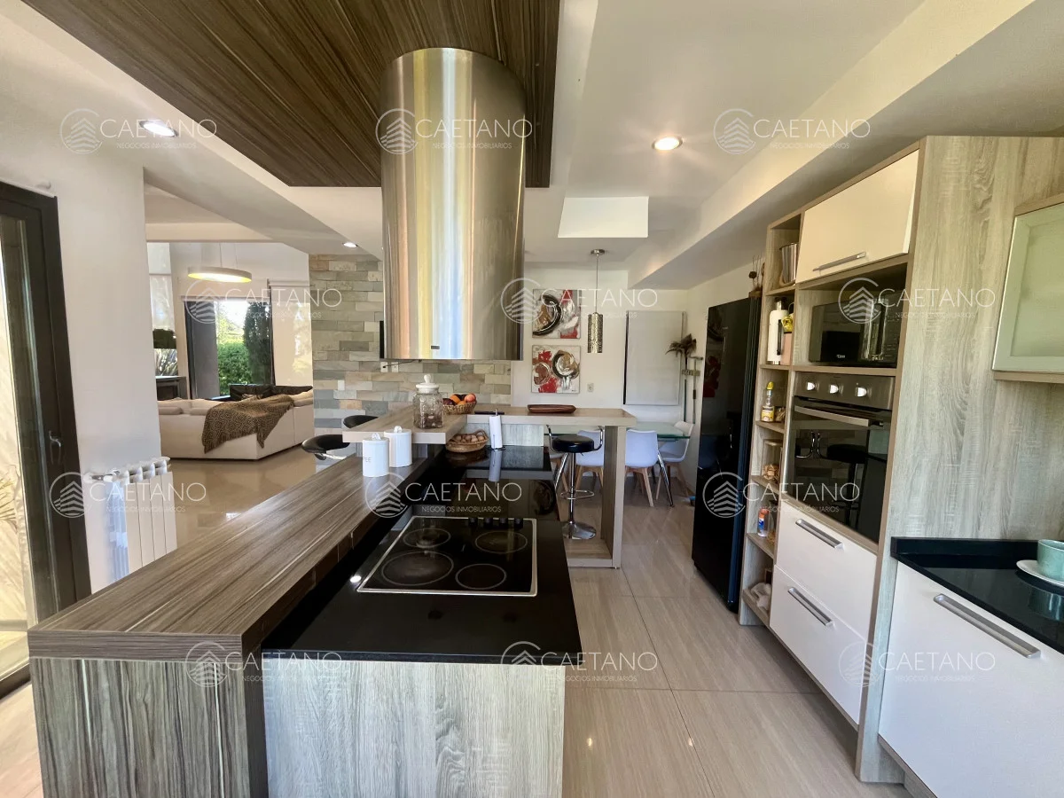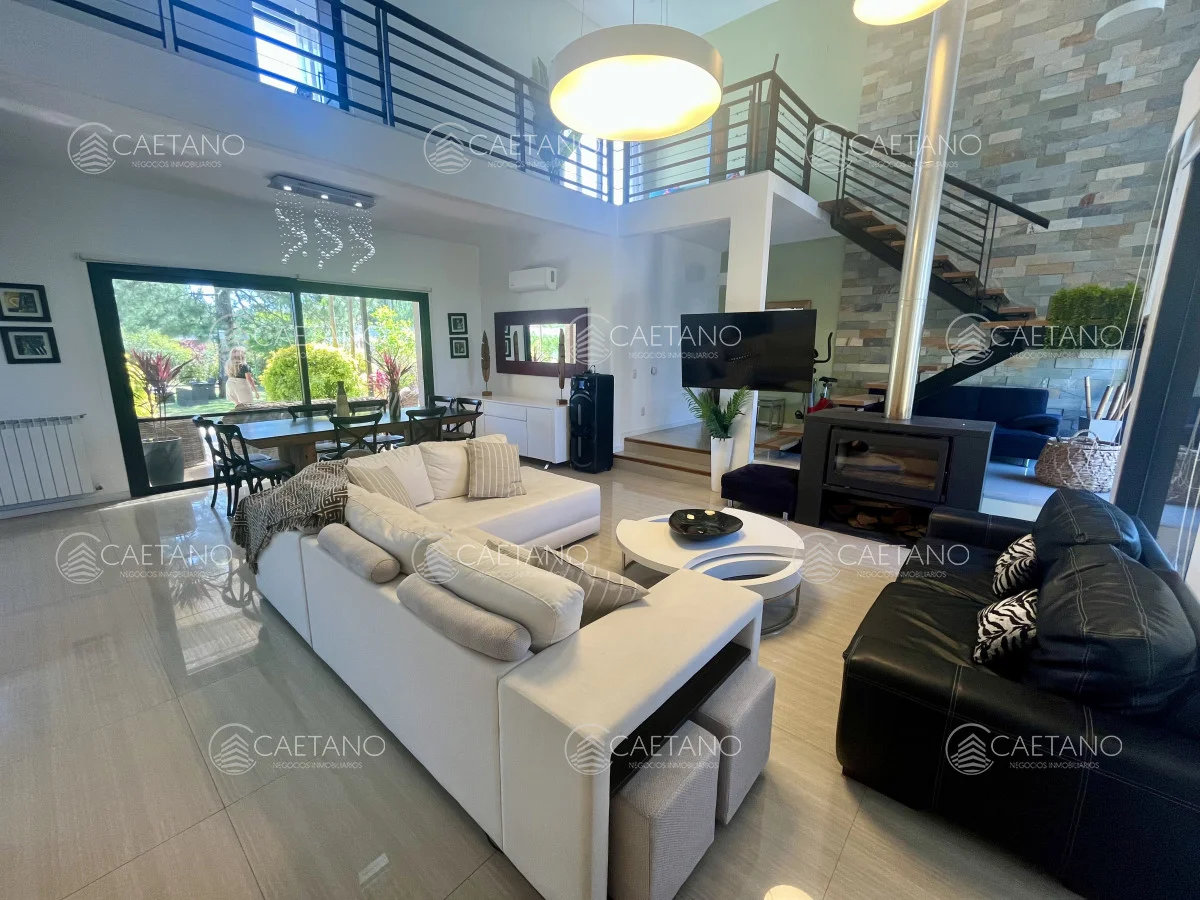 En planta baja se encuentra un amplio living comedor con estufa a leña de alto rendimiento, cocina semi integrada de muy buen tamaño y totalmente equipada, un dormitorio y un baño completo. Desde el área social se accede a una agradable galería con parrillero, junto a un parque privado con piscina, perfecto para el disfrute al aire libre.