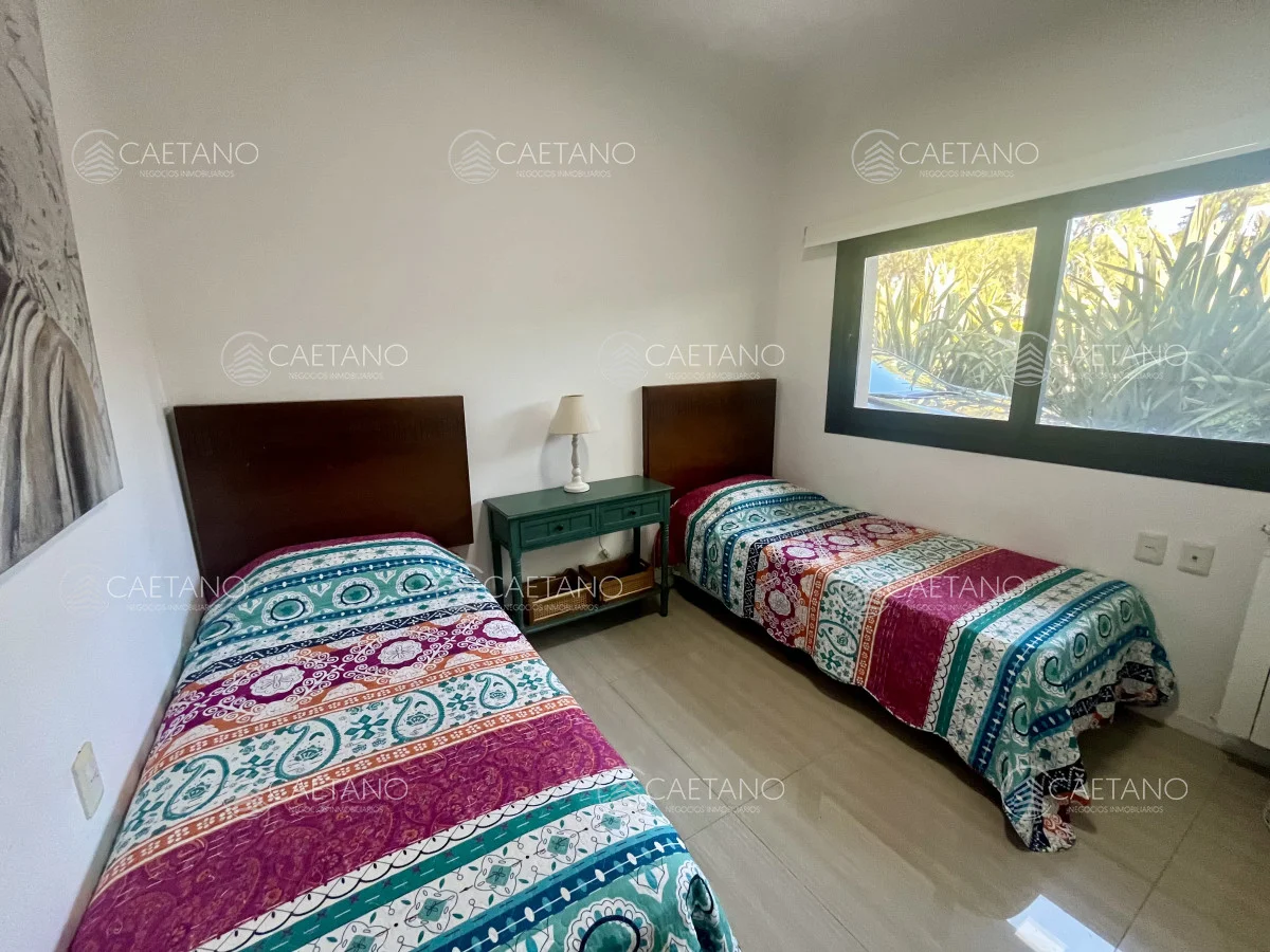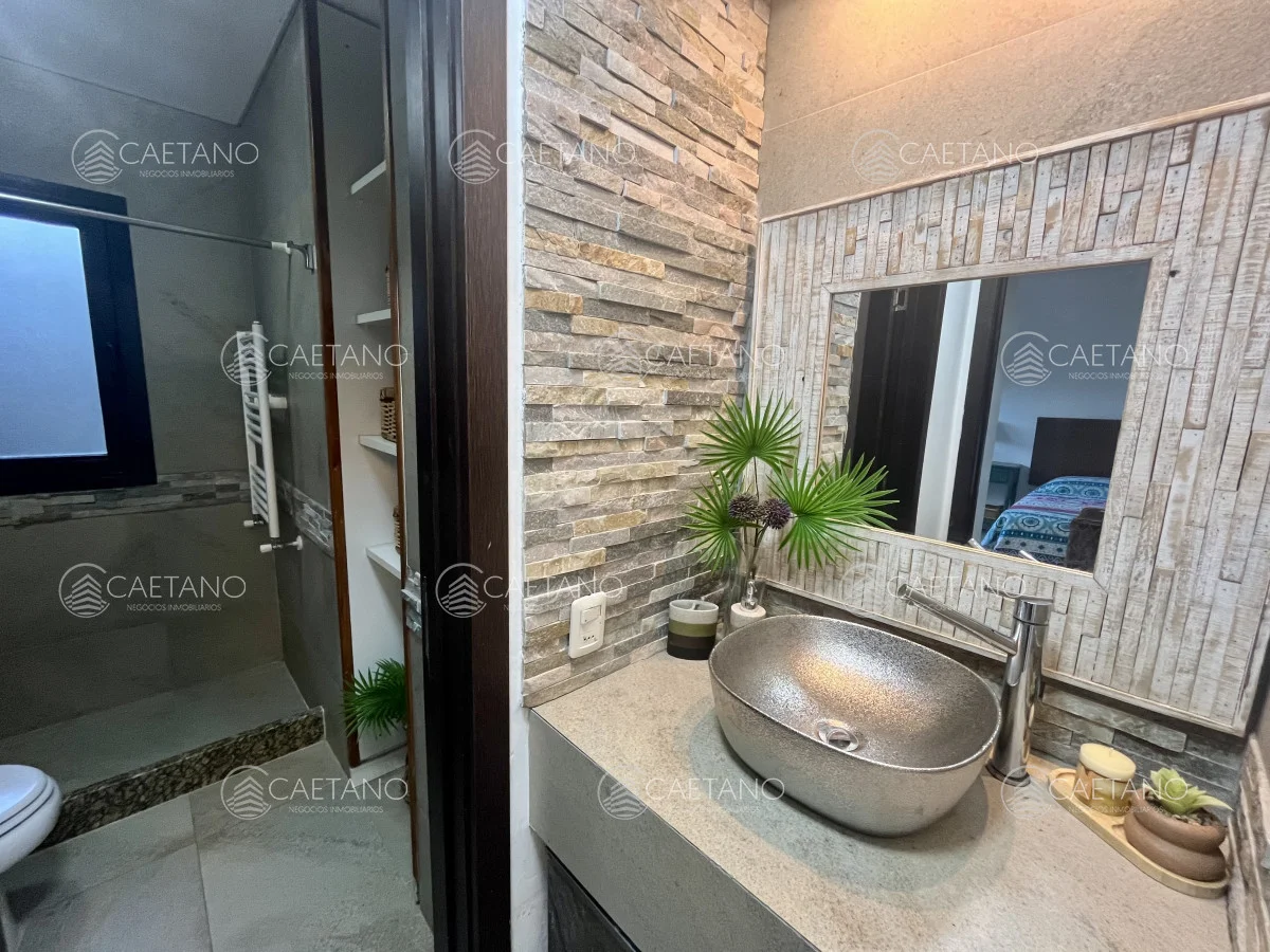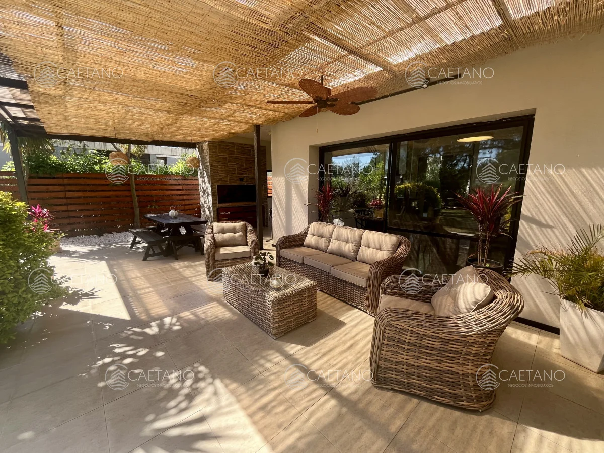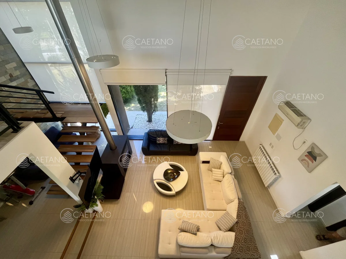 En planta baja se encuentra un amplio living comedor con estufa a leña de alto rendimiento, cocina semi integrada de muy buen tamaño y totalmente equipada, un dormitorio y un baño completo. Desde el área social se accede a una agradable galería con parrillero, junto a un parque privado con piscina, perfecto para el disfrute al aire libre.