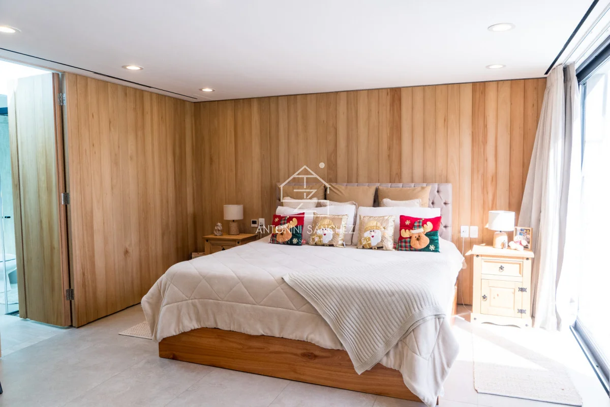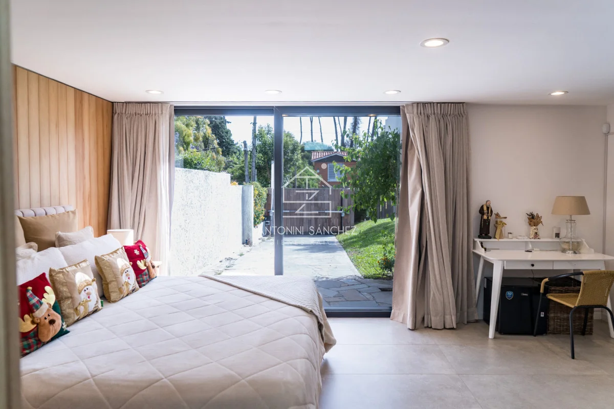 La vivienda cuenta con 4 dormitorios, 3 baños completos (dos de ellos en suite), toilette, dependencia de servicio completa, gran living comedor con estufa a leña, amplia cocina definida, lavadero, barbacoa totalmente equipada para disfrutar con amigos o en familia, pileta climatizada con jacuzzi, cochera techada para 5 autos, y un gran parque, recientemente reciclada con un gusto exquisito.