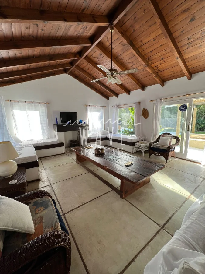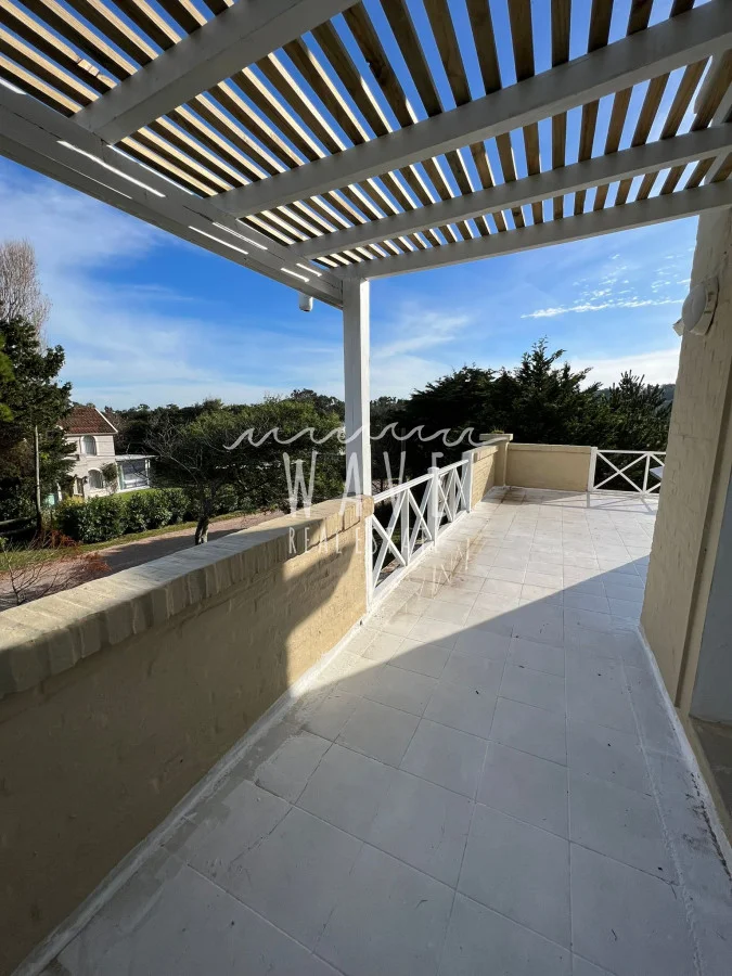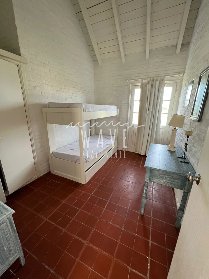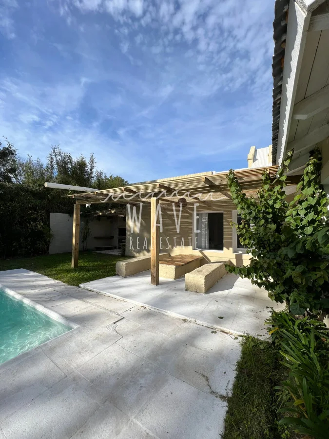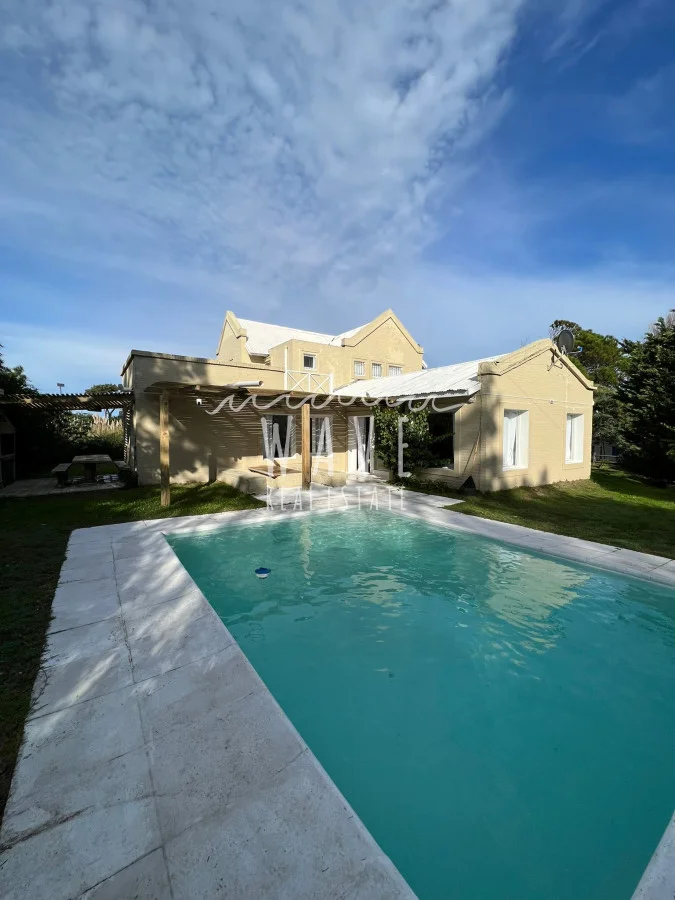 La Barra, a 100 mts de Ruta 10, una casa amplia, fresca, cómoda, ideal para familias numerosas y con adolescentes, por lo céntrica. Tiene 5 dormitorios, 5 baños, dependencia de servicio con baño, cerramiento perimetral, parrillero techado, piscina.