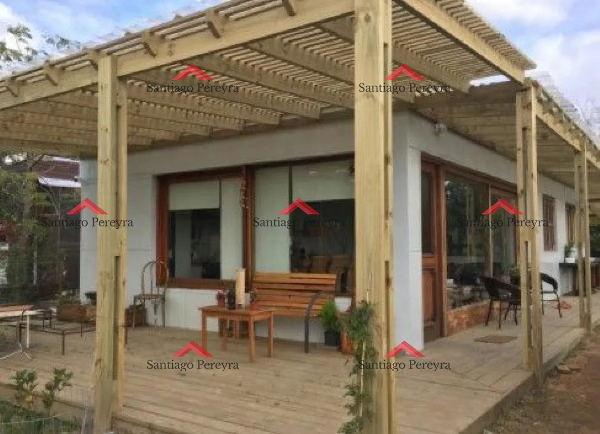 Galería con living exterior, deck con parrillero con capacidad para 8 personas.