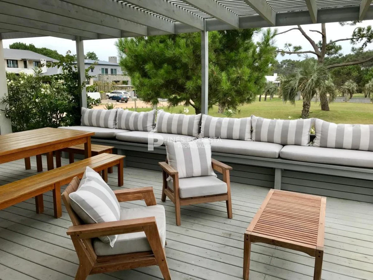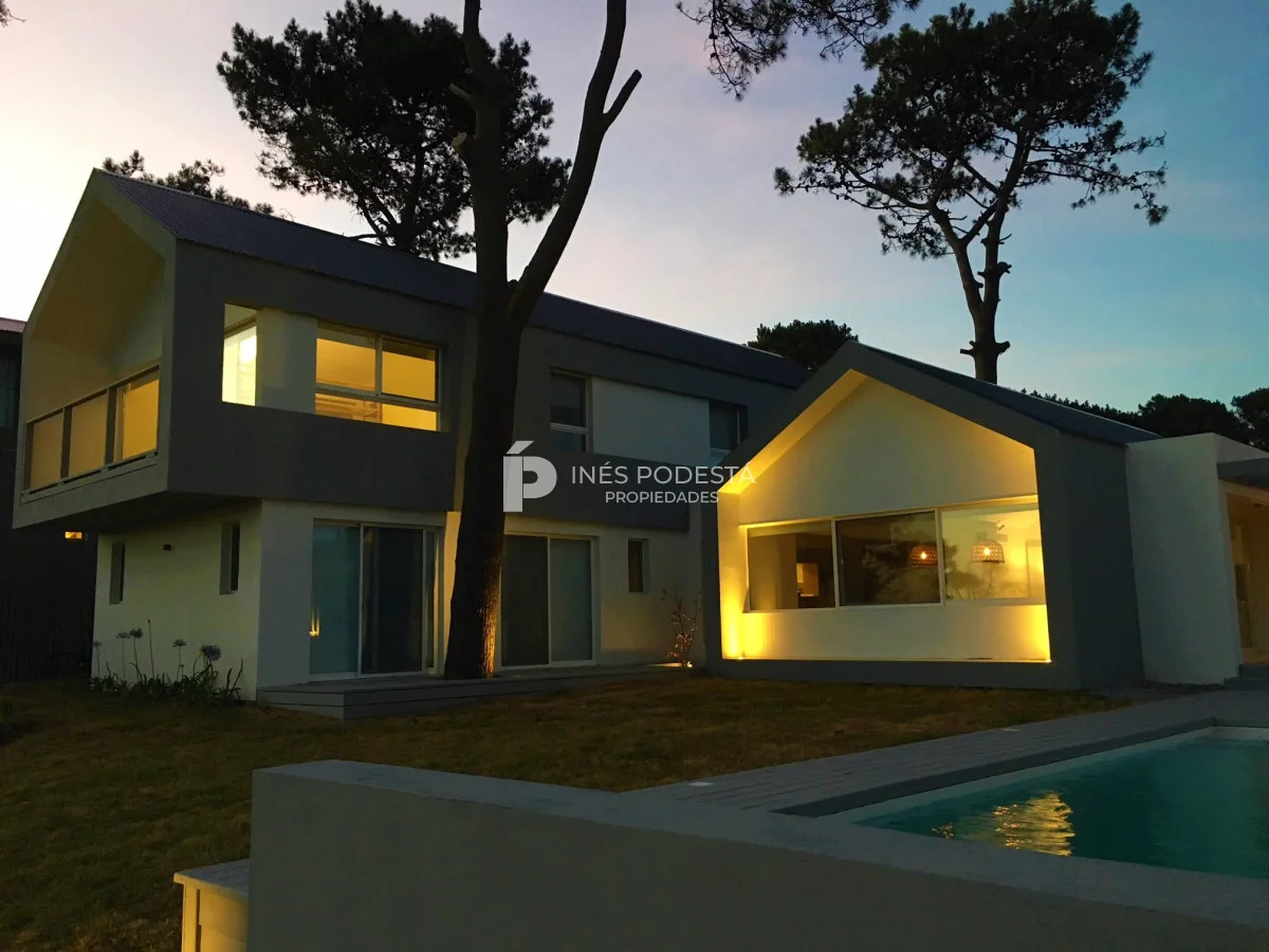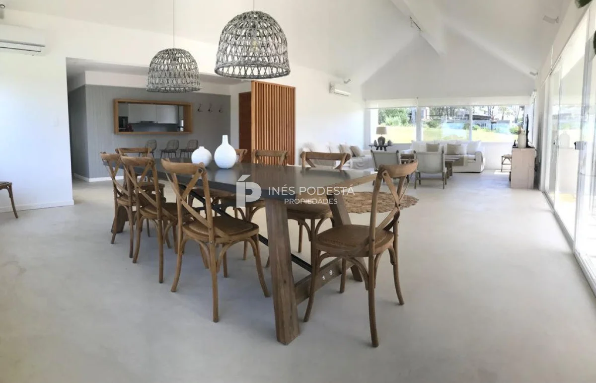 Pinares del Faro, barrio cerrado, Jose Ignacio. Implantada en 2 niveles totalmente equipados, 5 dormitorios, 5 baños, 1 toilette, amplio living comedor con estufa a leña, cocina semi abierta, jardín con piscina y deck con parrillero