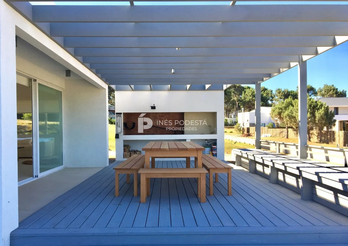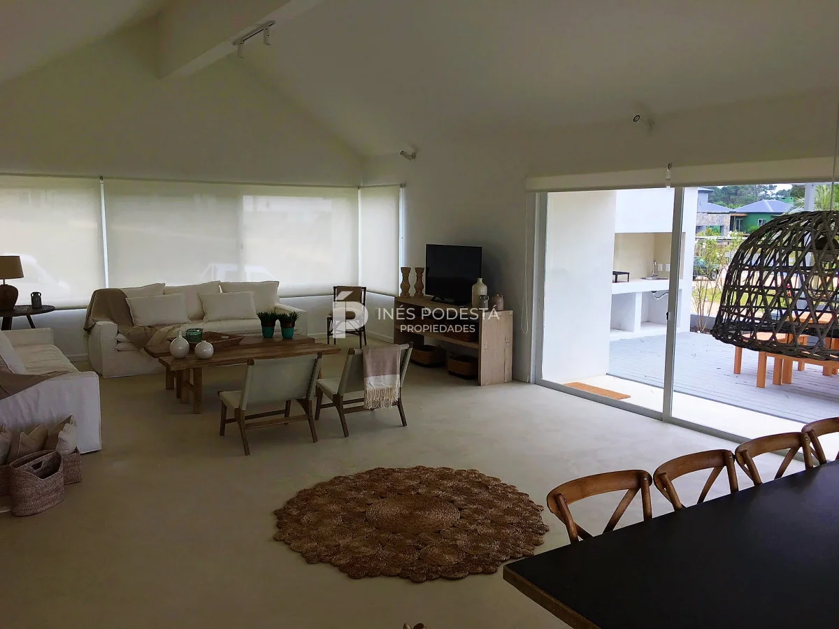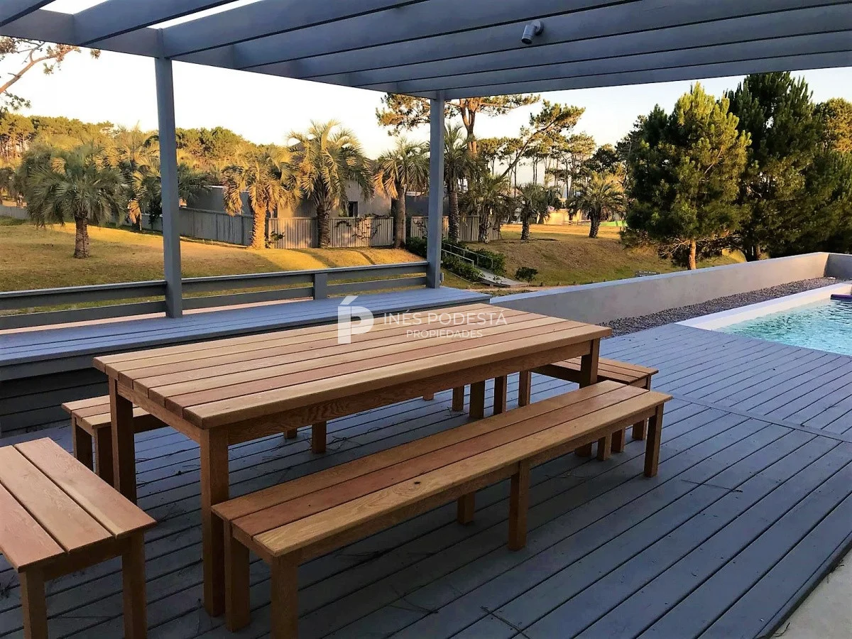 Pinares del Faro, barrio cerrado, Jose Ignacio. Implantada en 2 niveles totalmente equipados, 5 dormitorios, 5 baños, 1 toilette, amplio living comedor con estufa a leña, cocina semi abierta, jardín con piscina y deck con parrillero