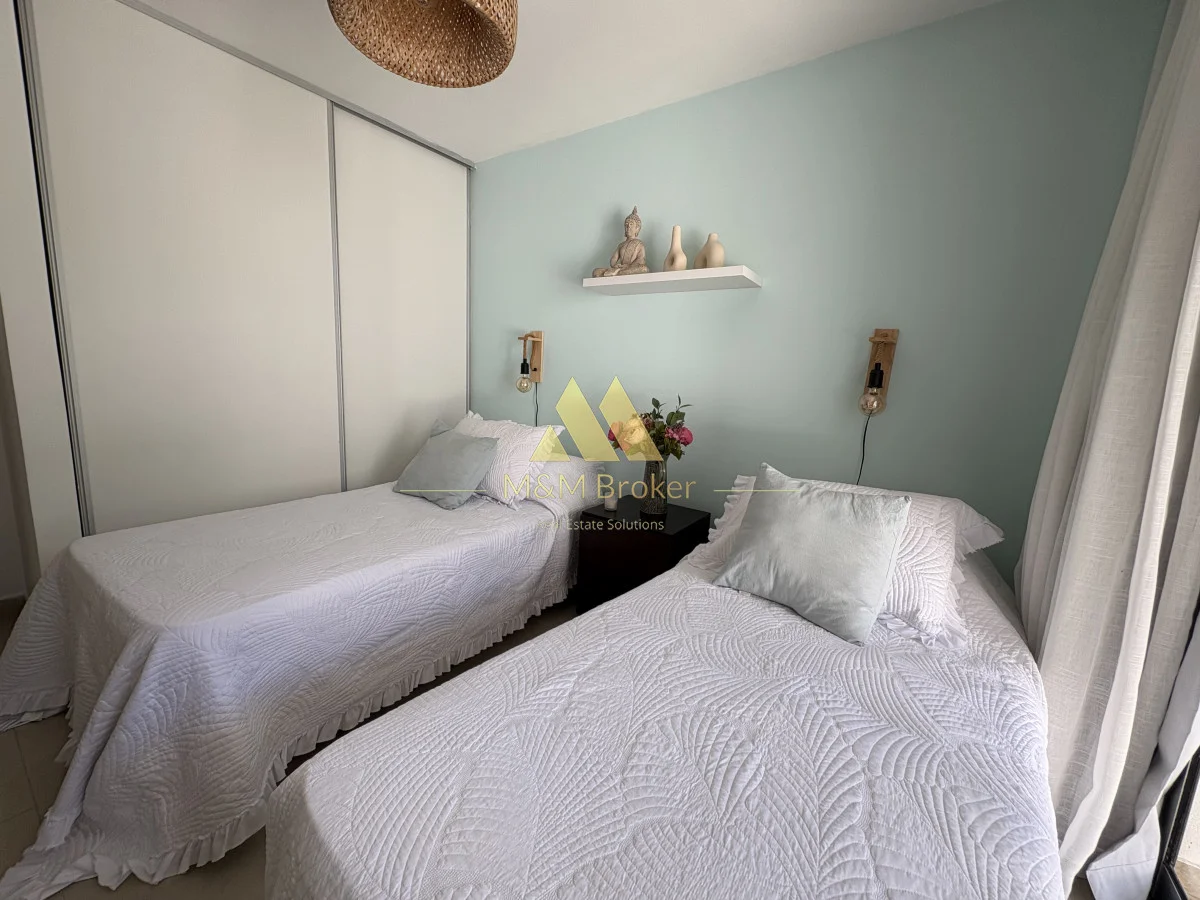 Living comedor al frente con terraza, cocina equipada, baño social, 3 dormitorios con amplia terraza, suite principal, 2 baños, calefacción por losa radiante, aire acondicionado, totalmente equipado, en planta superior terraza con parrillero techado de uso propio de la unidad, con baño, garaje, box, el edificio cuenta con piscina abierta, cerrada, sauna, gym, servicio de mucama y vigilancia.