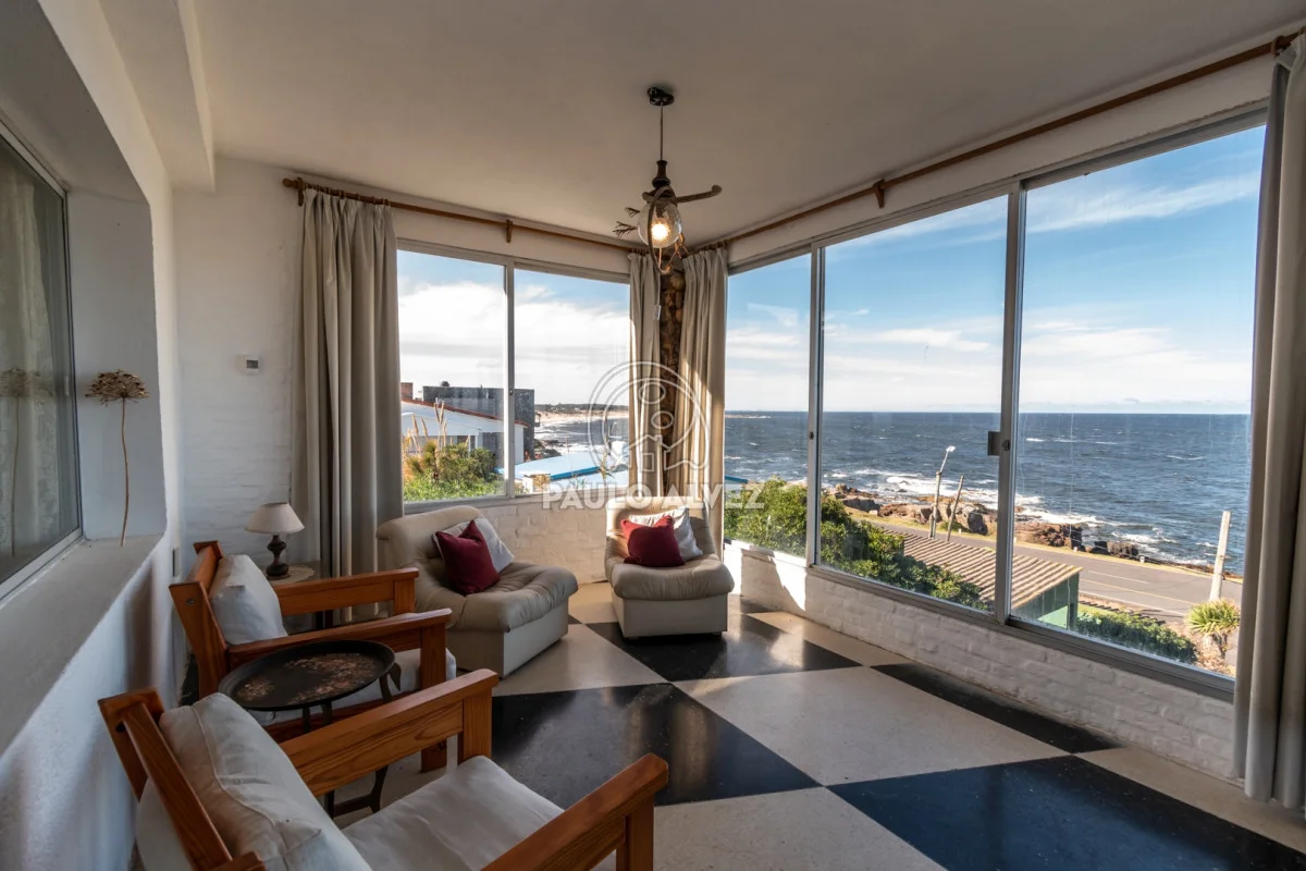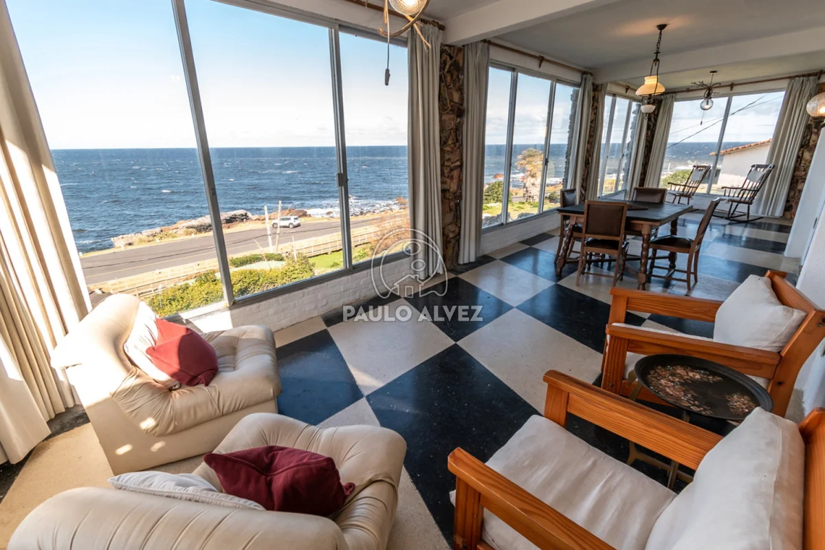 Excelente propiedad frente al mar emplazada sobre dos padrones. Sólida construcción en dos niveles, distribuido en planta baja por living con excelente vista al mar, comedor con acceso a amplia cocina, seguida por baño social. Planta alta, baño completo, tres dormitorios con vista la mar, dormitorio matrimonial con acceso amplio balcón con vista a Punta del Este. Vea las fotos y consulte por más información.