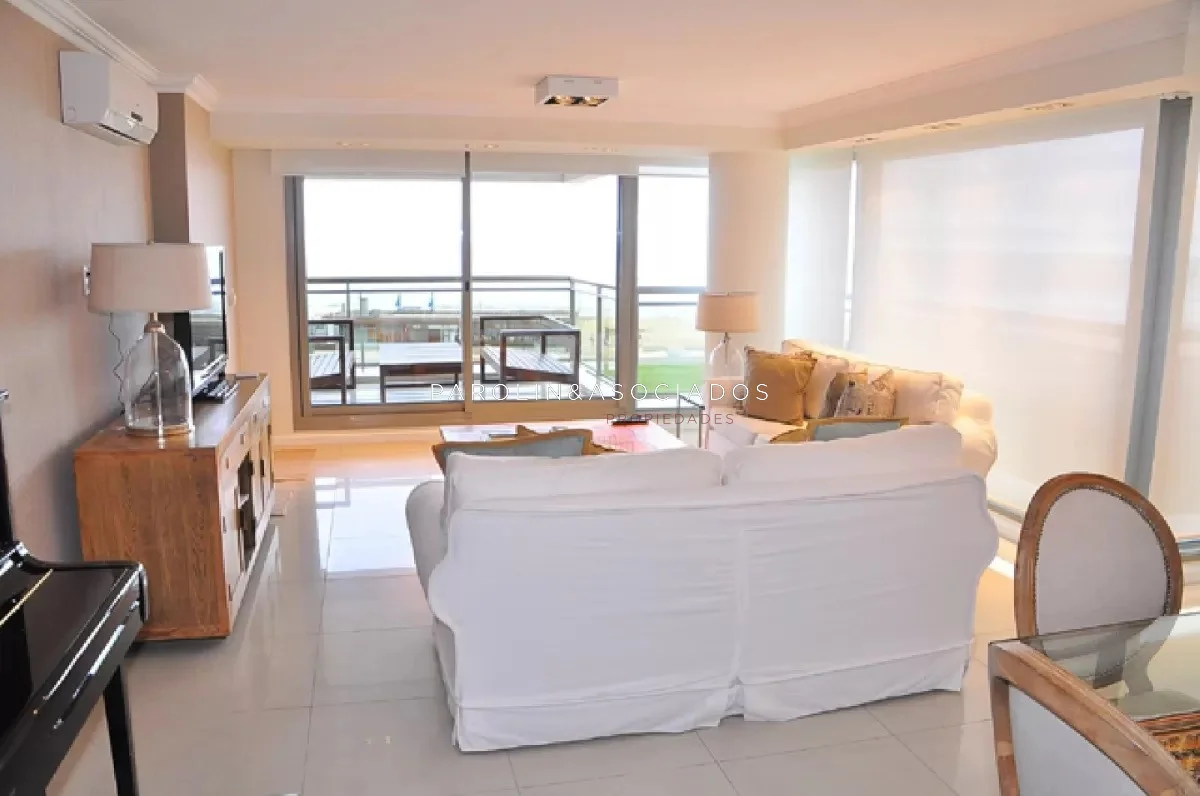 Apartamento en Brava - Punta del Este Frente al Mar !! Unidad de 3 Dormitorios 3 Baños 4 Suites Cocina : Definida, Living , Comedor , Living Comedor Amenities : Sauna - Lobby - Vestuarios - Ascensor - Recepción - Piscina Climatizada - Piscina - Sauna seco - Gimnasio - Sala de computadoras - Wi fi - Sala de adolescentes - Cadete - Ser. Mucama - Serv. Playa - Serv. Mantenimiento - Laundry - Barbacoa - Club House - Spa - Mantenimiento - Estacionamiento - Recreación - Garage - Jacuzzi - Lavadero - Referencia Interna : Tera-11469