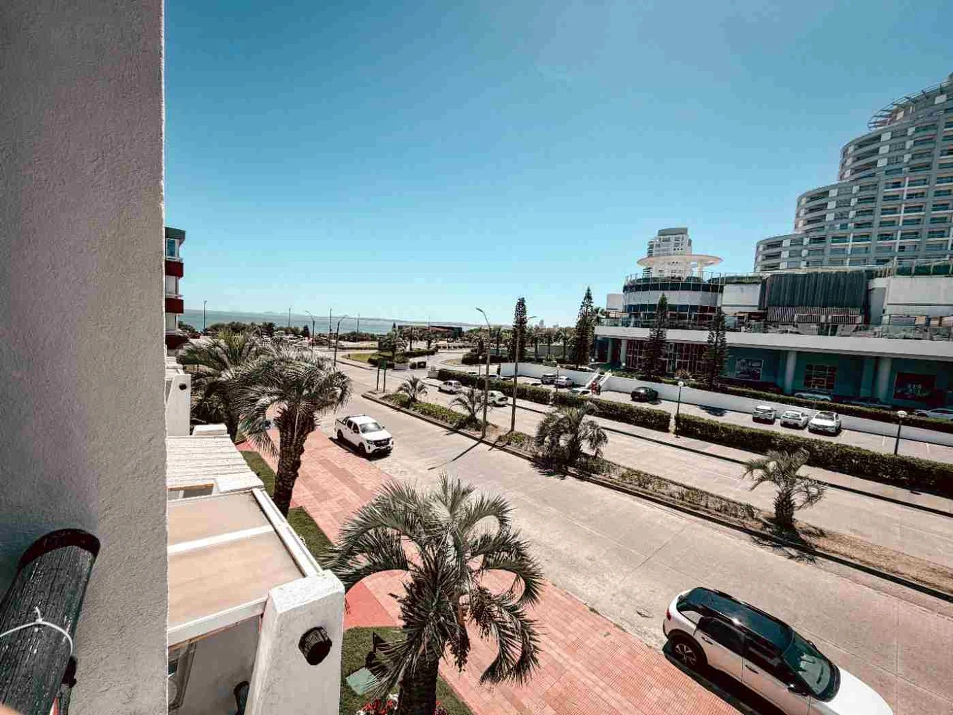 El living se integra a balcón con vista parcial al mar y vista directa al Enjoy, ideal para disfrutar el entorno y la ubicación única.