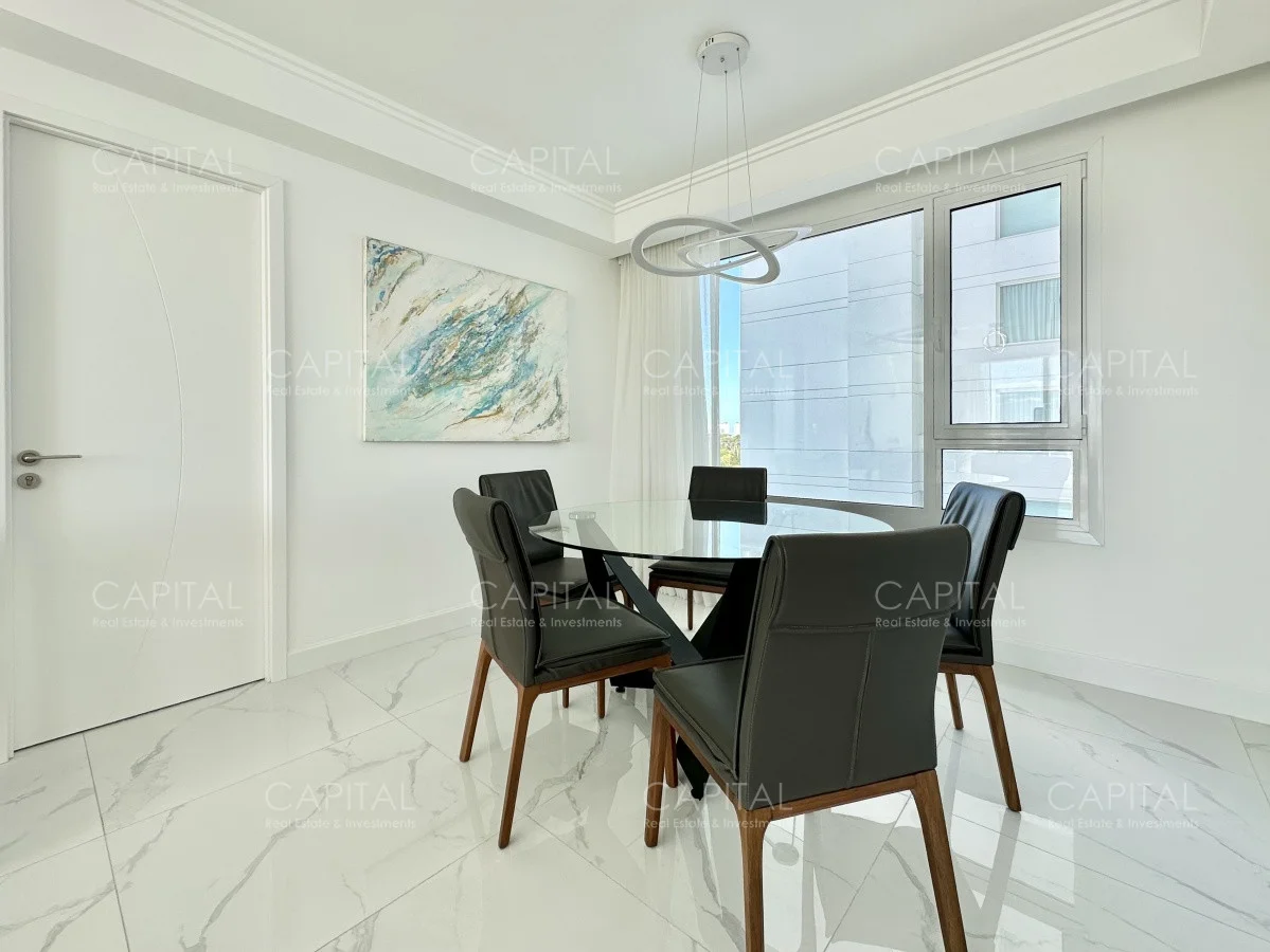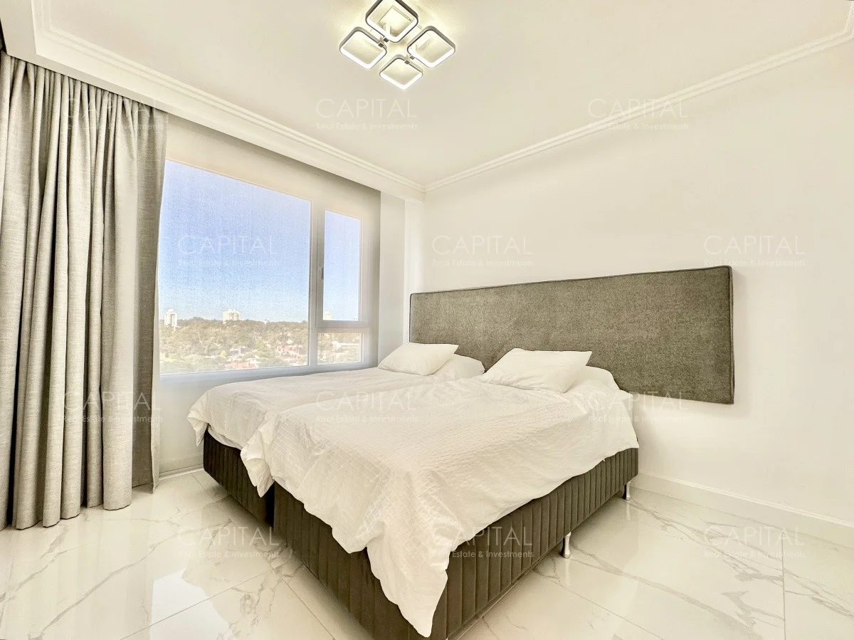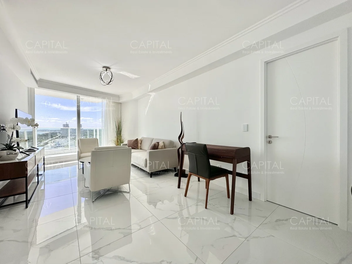 Apartamento de dos dormitorios uno en suite mas toilette social, palier privado con ocho ascensores de gran velocidad, la ubicación del edificio en primera linea frente al mar ofrece una vista totalmente panorámica de la Playa Mansa.