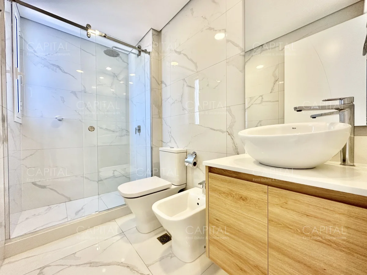 Amplio dormitorio principal al frente, vista al mar, baño completo y vestidor.