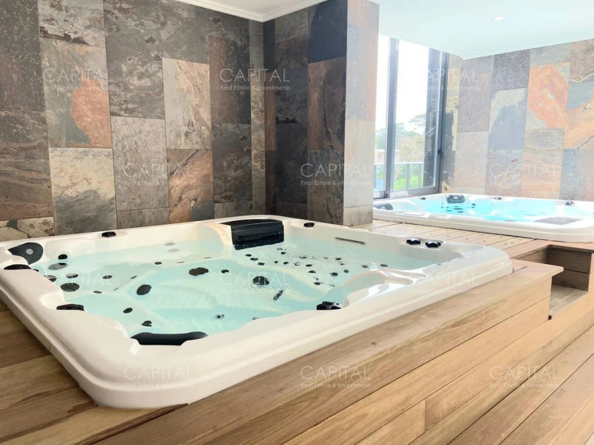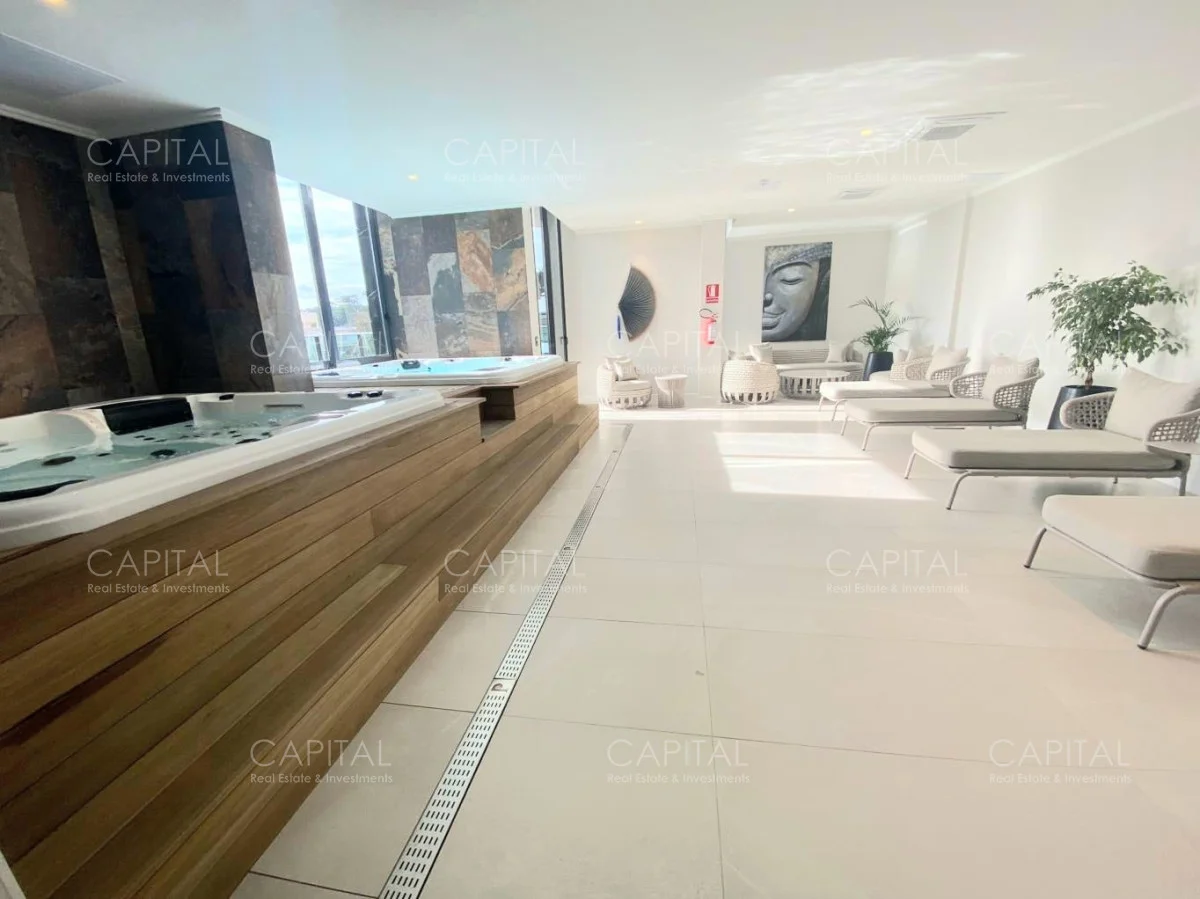 El edificio se destaca por sus amenities, dos piscinas interiores climatizadas, dos exteriores climatizadas, gimnasio de ultima generación con vista panorámica al mar, seis barbacoas con ascensor, dos saunas, dos salas de masajes, sala de adultos, sala de adolescentes sala de niños, cine 3D, salón de fiesta para 150 personas, servicio de playa totalmente premium, recepción, garajista las 24hs, video vigilancia, entradas totalmente controladas a través de la domótica, estacionamiento de cortesía y cargador de cortesía para autos electicos.
