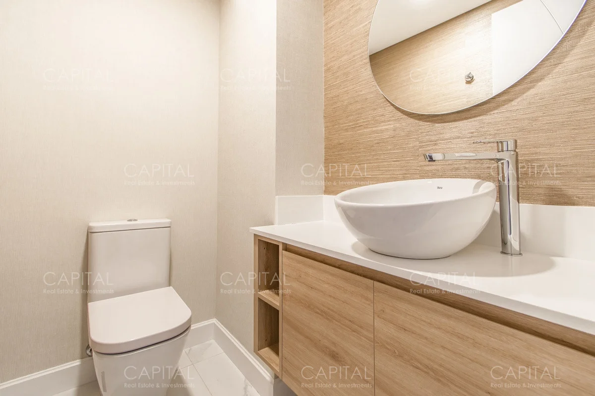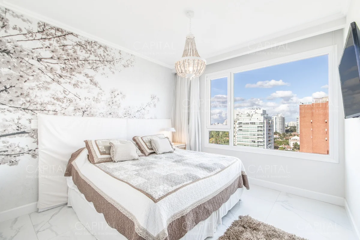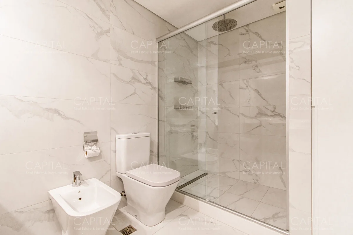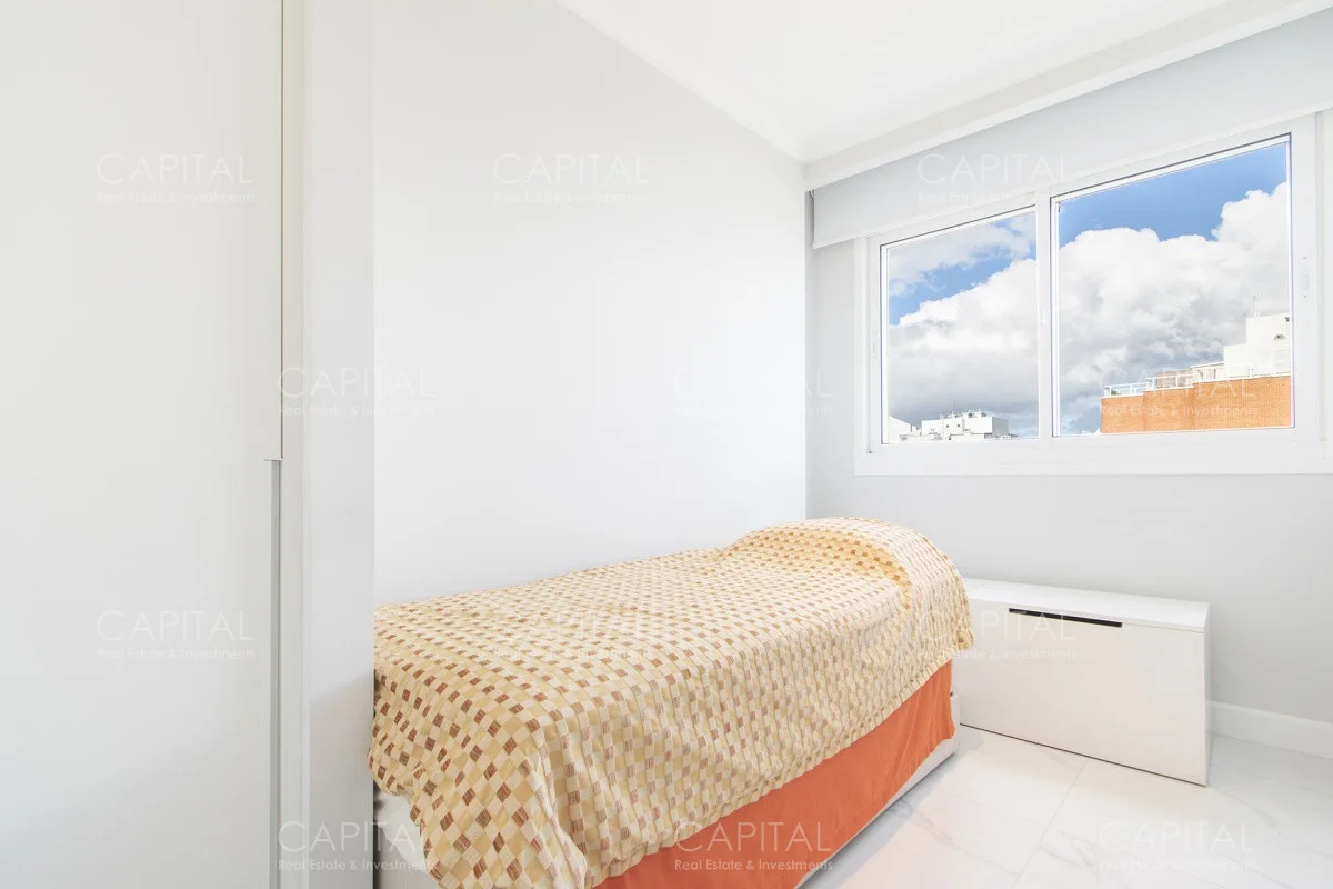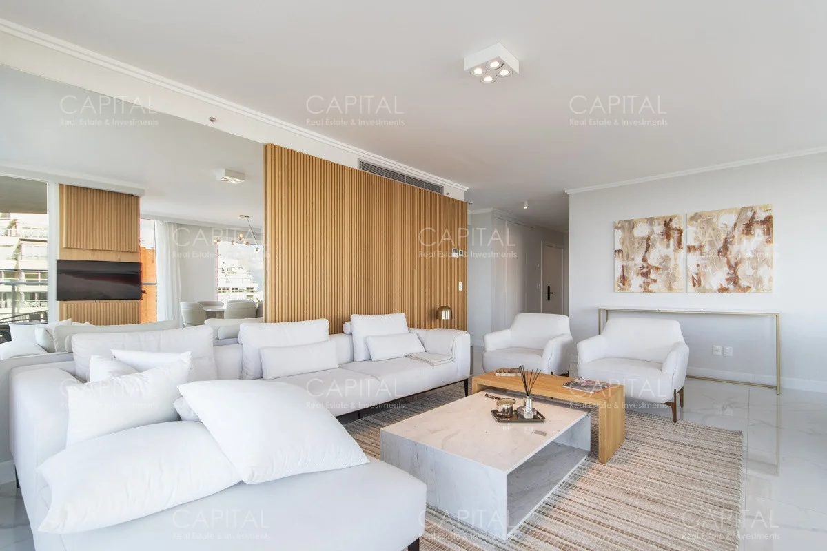 Apartamento de tres dormitorios en suite mas dependencia con baño y toilette social, palier privado con ocho ascensores de gran velocidad, la ubicación del edificio en primera linea frente al mar ofrece una vista totalmente panorámica de la Playa Mansa.