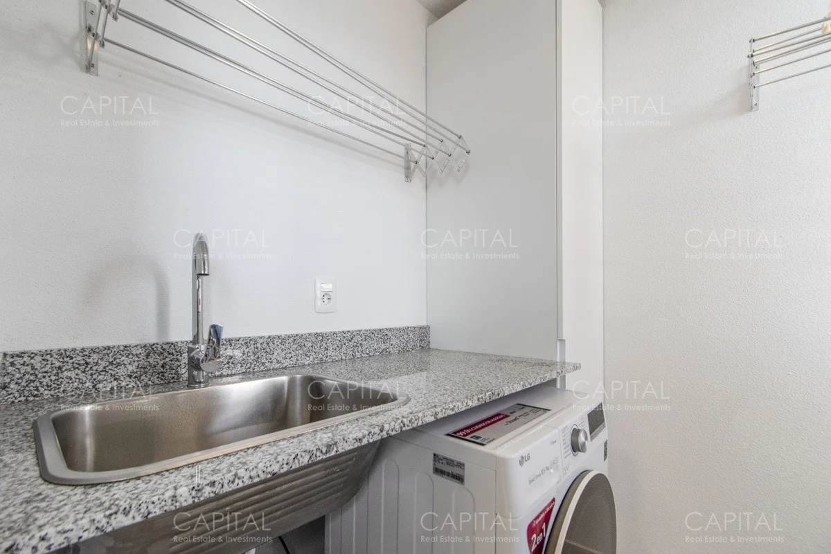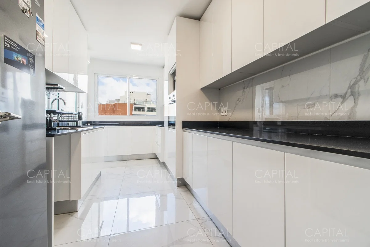 Cocina definida, lavadero y living comedor con salida a la terraza pudiendo disfrutar de las vista al mar.