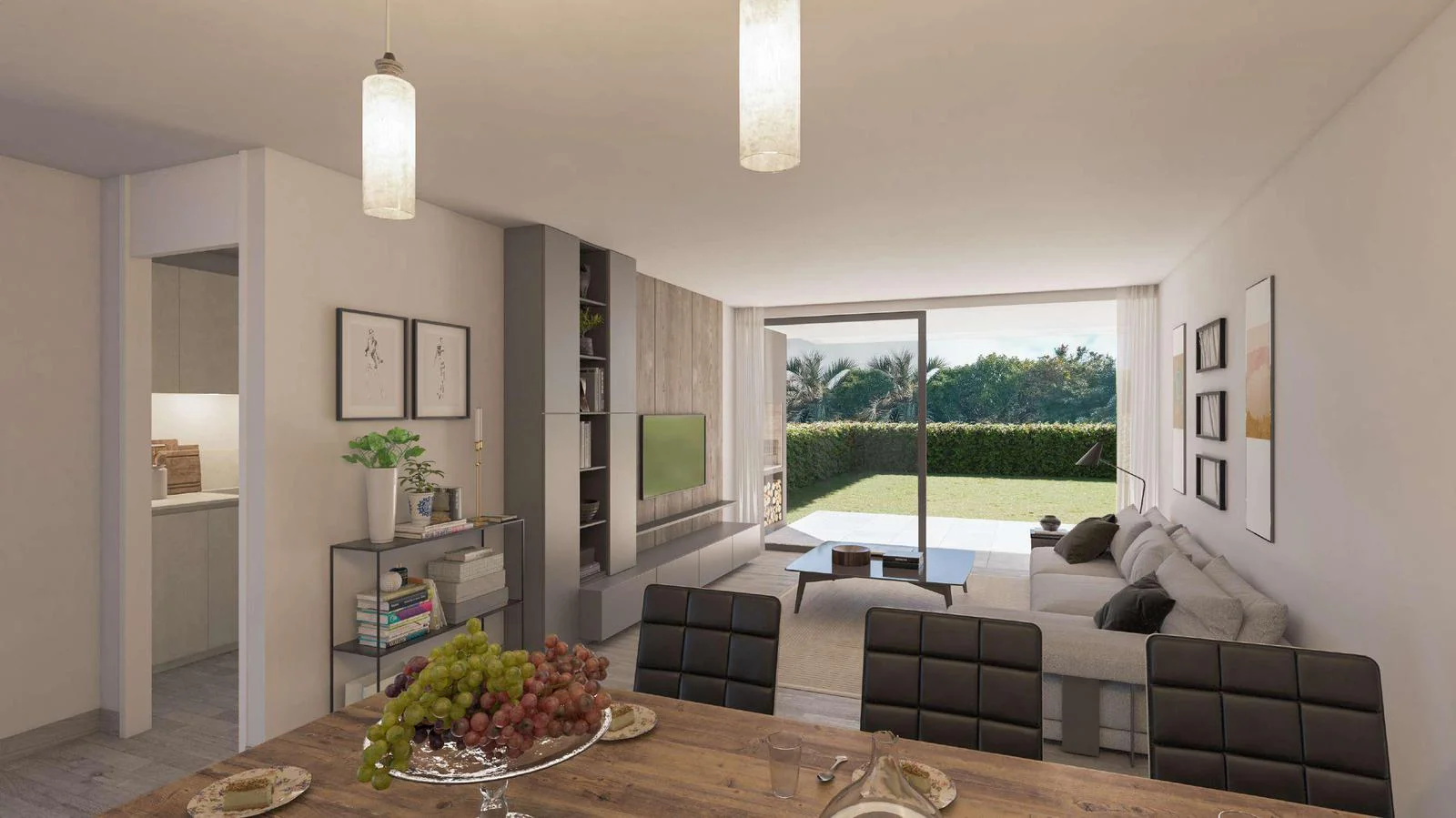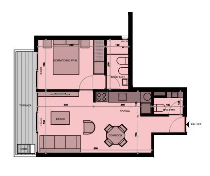 Apartamento con Living comedor con acceso a terraza con parrillero y amplio patio de uso exclusivo. Cocina integrada con muebles de bajo mesada y aéreos. Baño social. 1 Dormitorio con placard y baño en suite.
