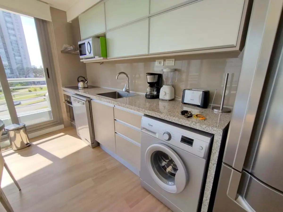 Apartamento de disposición esquinera con buena luminosidad, amplios ambientes, servicios y todos los amenitties.