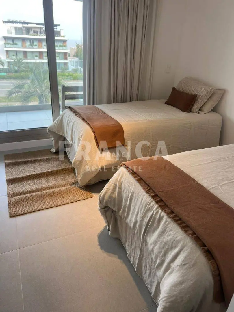 Este apartamento cuenta con dos dormitorios en suite, toilette de visitas, cocina integrada con barra al comedor, y un cómodo living con salida a una terraza con vista al mar. Diseño moderno, espacios bien resueltos y excelente luminosidad completan esta propuesta ideal para vivir o vacacionar con confort y estilo.