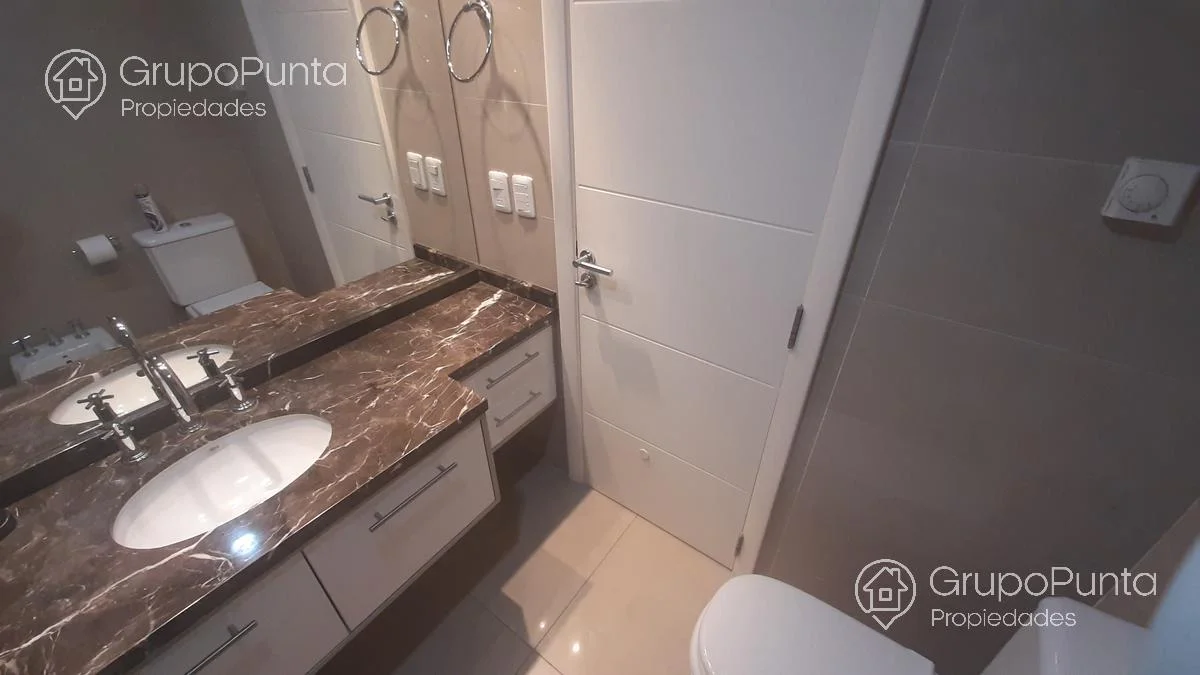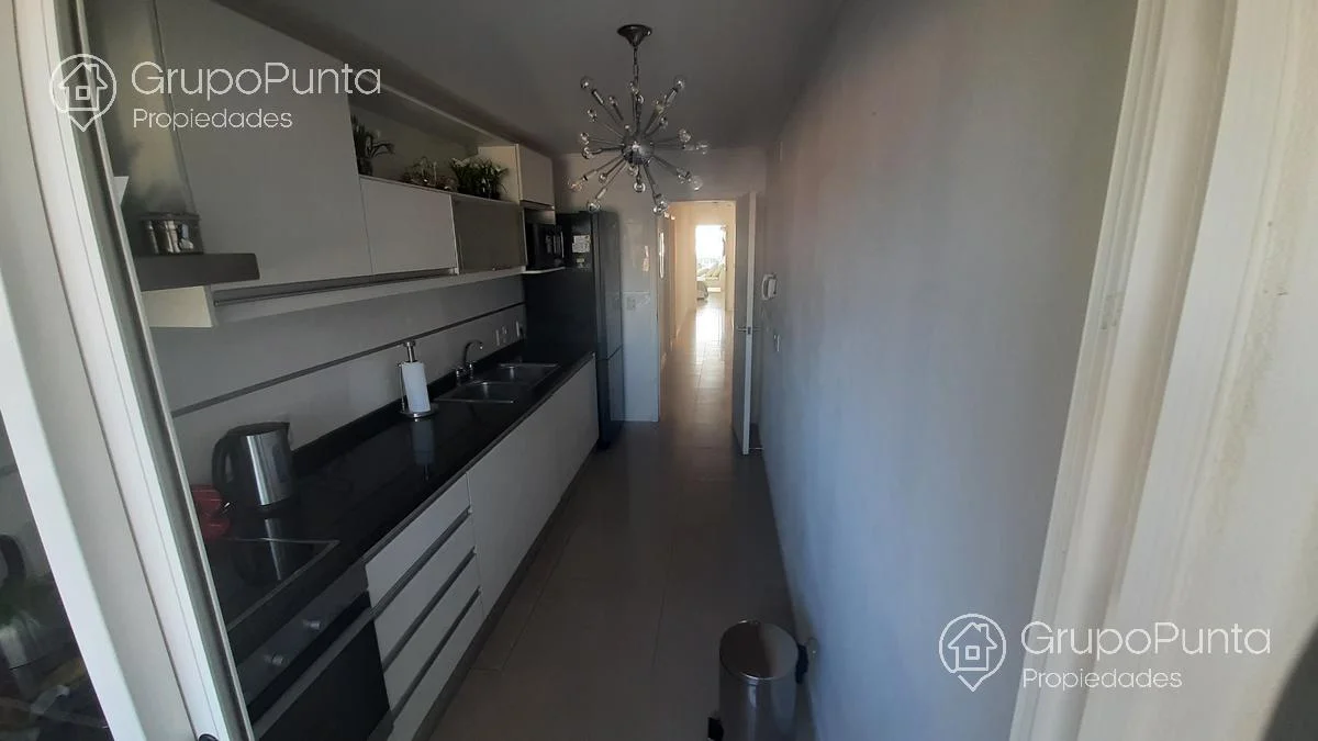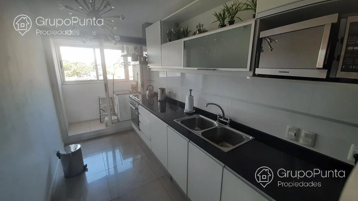 Apartamento de 2 dormitorios en suite + habitación de servicio, cocina cómoda y totalmente equipada con lavarropas incorporado, living-comedor, balcón con parrillero.