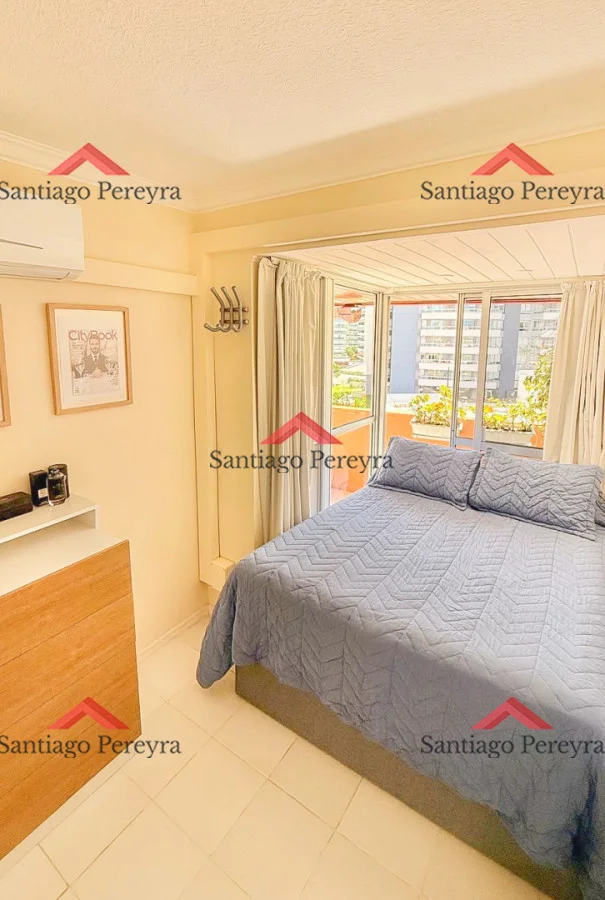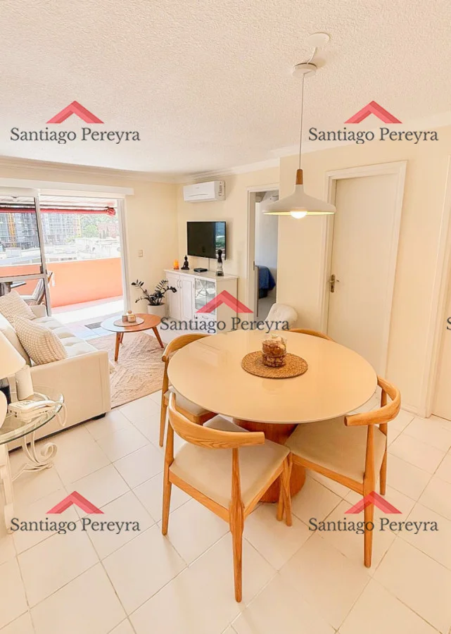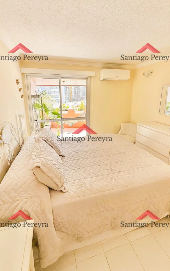 Cómodo apartamento a pasos de playa Brava en zona de restaurantes y comercios. Orientado al NorOeste, super soleado. Living-comedor con salida a extensa terraza de 21 metros, cocina definida, 2 dormitorios (principal en suite), 1 baño completo más un toilette. Aire acondicionado en todos los ambientes. Garage en subsuelo con baulera. Edificio con expensas super bajas que incluyen servicio de mucamas, servicio de playa, piscina exterior climatizada, saunas, gimnasio, WiFi y cable, entre otros.