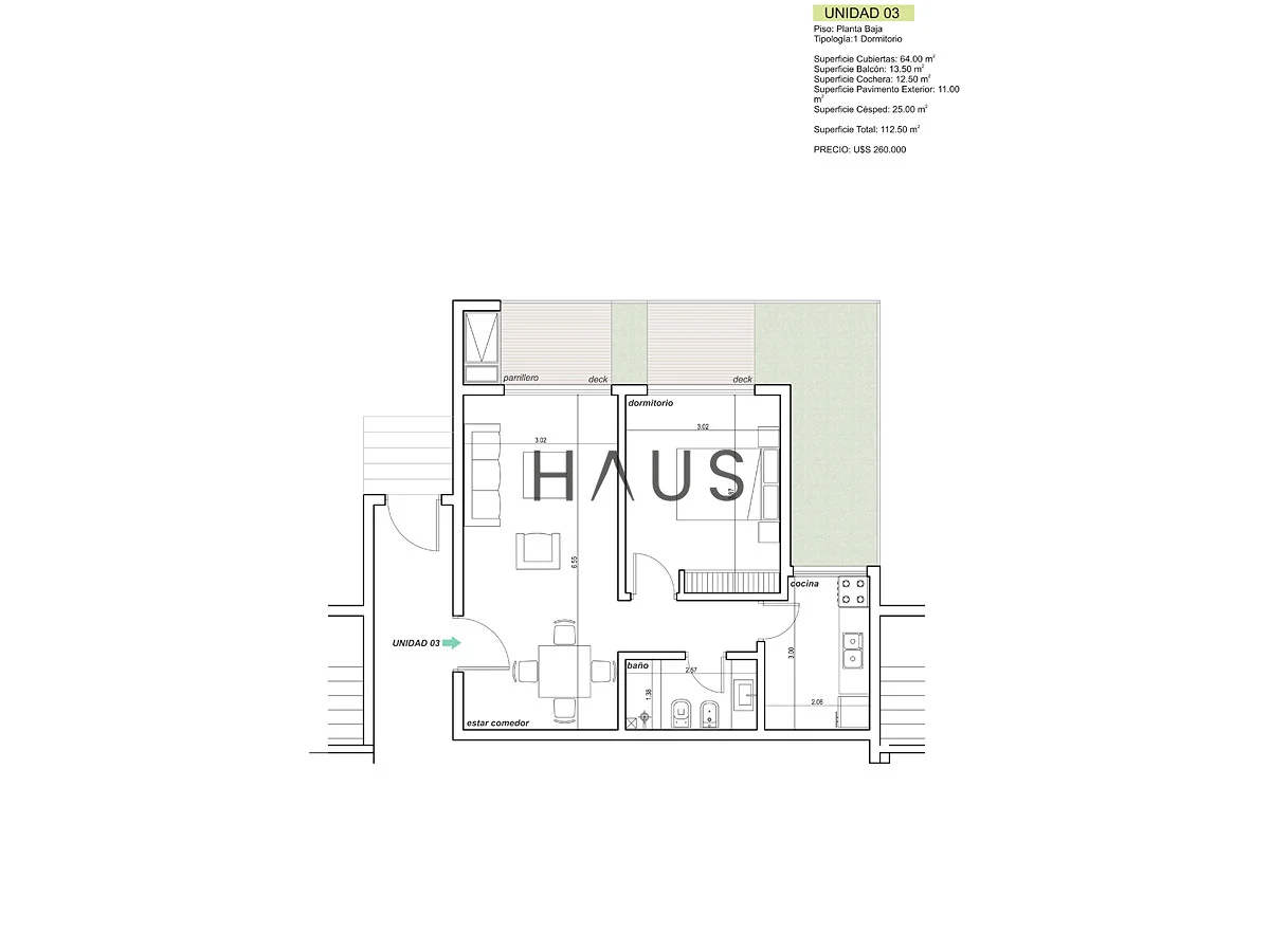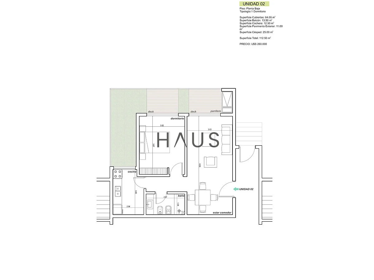 + $ 17,000 Дополнительно / U$S 2,328/m2