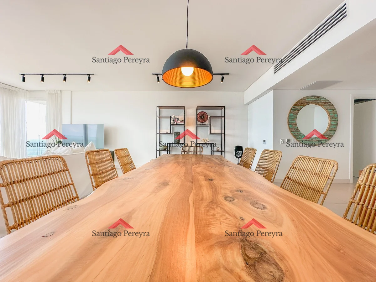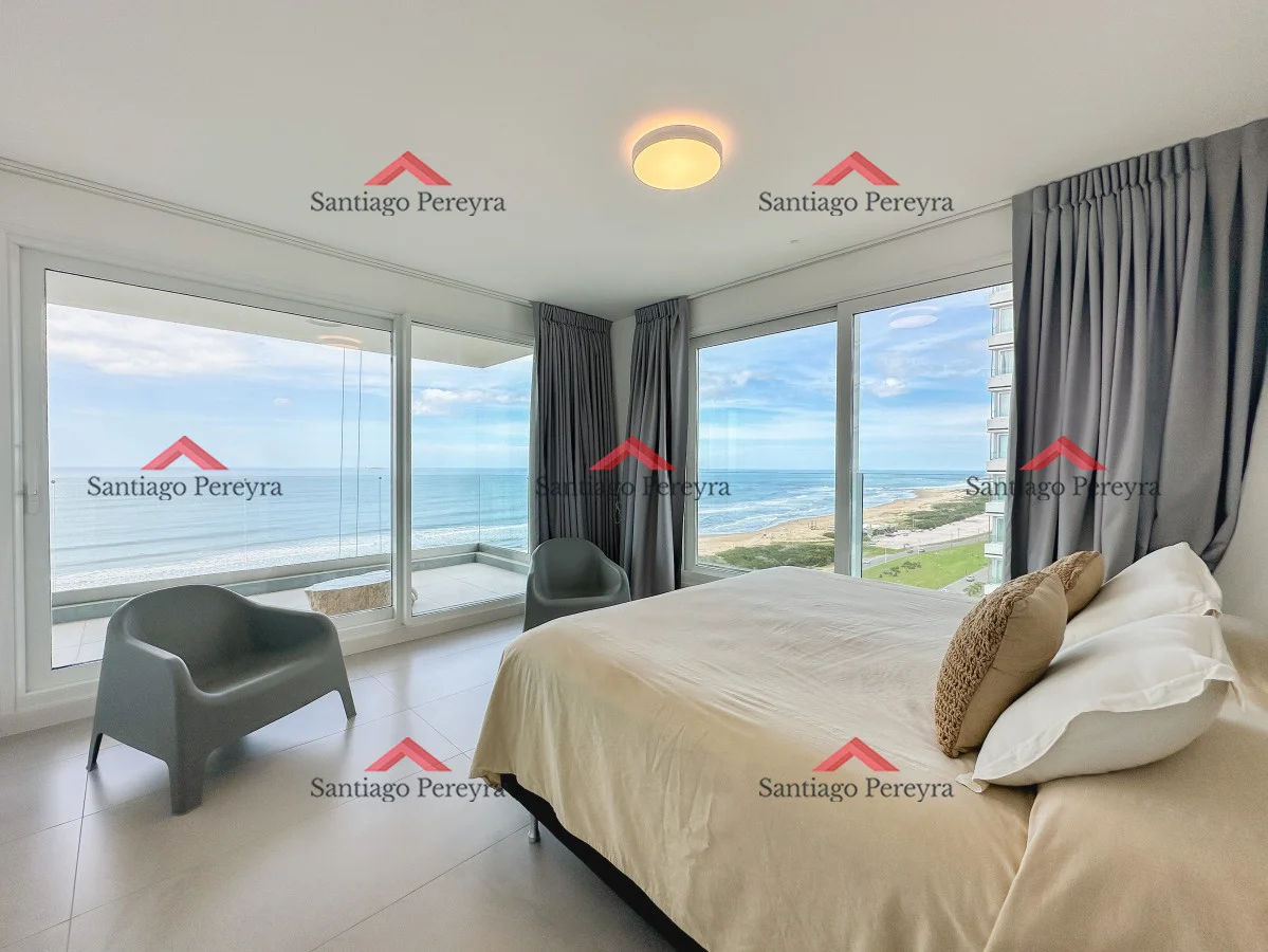 Apartamento en piso alto con impactantes vistas al Océano. Unidad esquinera. Extenso living-comedor con salida a terraza. Cocina definida con comedor diario. 4 dormitorios en suite (4 baños completos), el principal con vestidor. Toilette. Amplio garage en subsuelo. Baulera. Amenities de primera categoría.