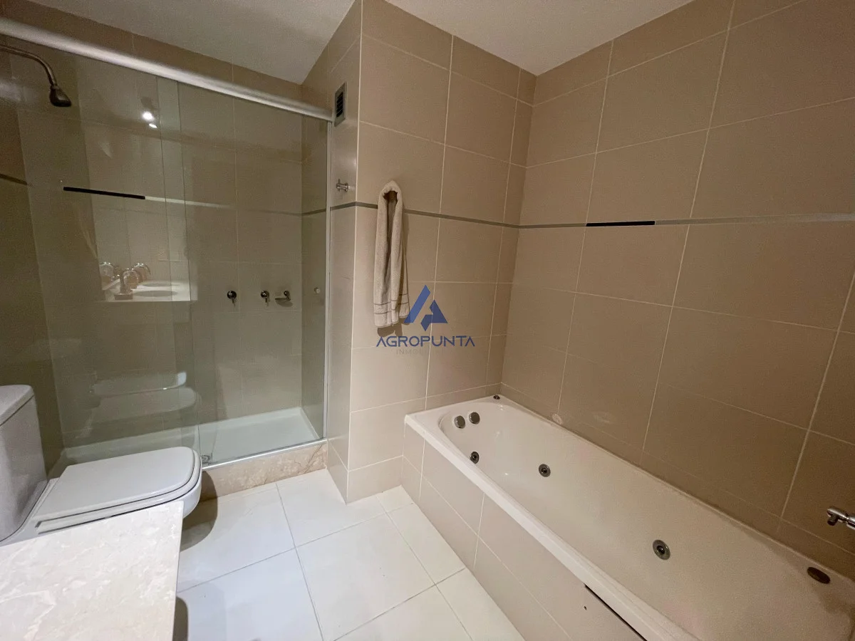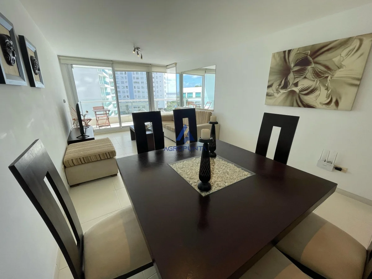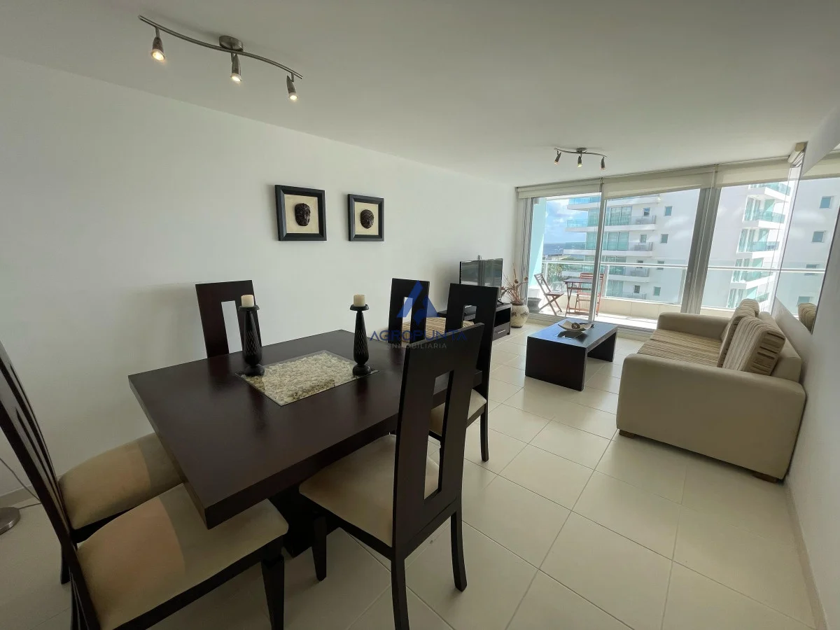Ubicacion: Parada 4 de playa Mansa a 100 metros del mar. Descripcion: 2 Dormitorios, 3 Baños 2 en suit, toilette, living, comedor, cocina. Totalmente equipado. Garage, piscina, sauna, vigilancia, servicios de mucama, gimnacio, play room, canchas, servicio de playa y parillero. . Referencia Interna : Tera-1258