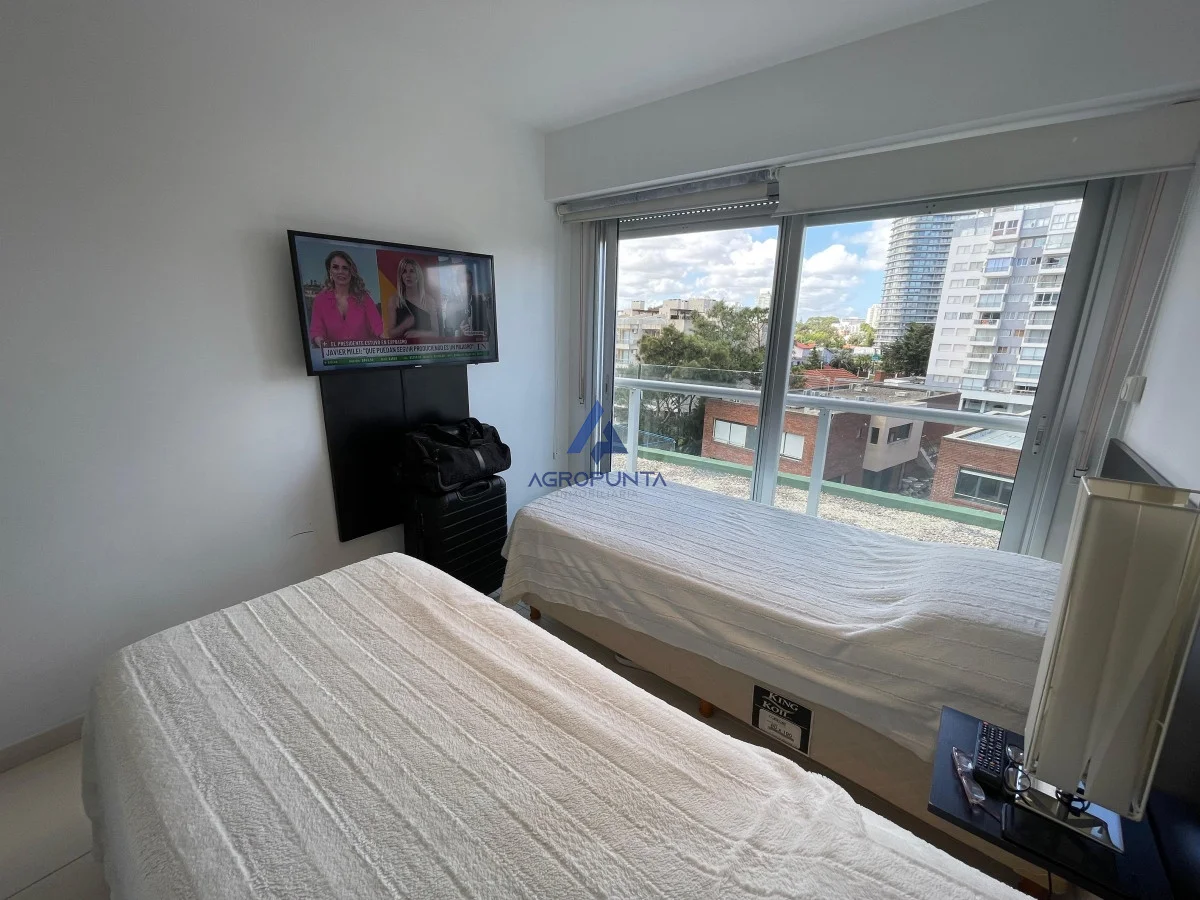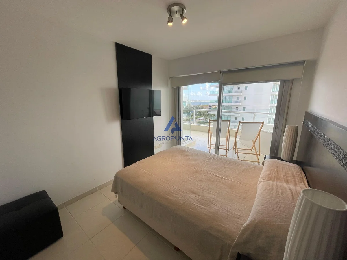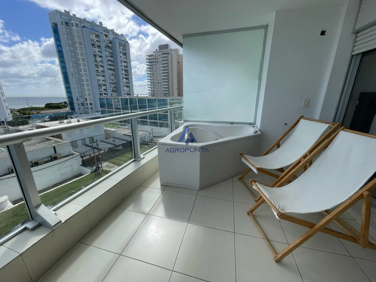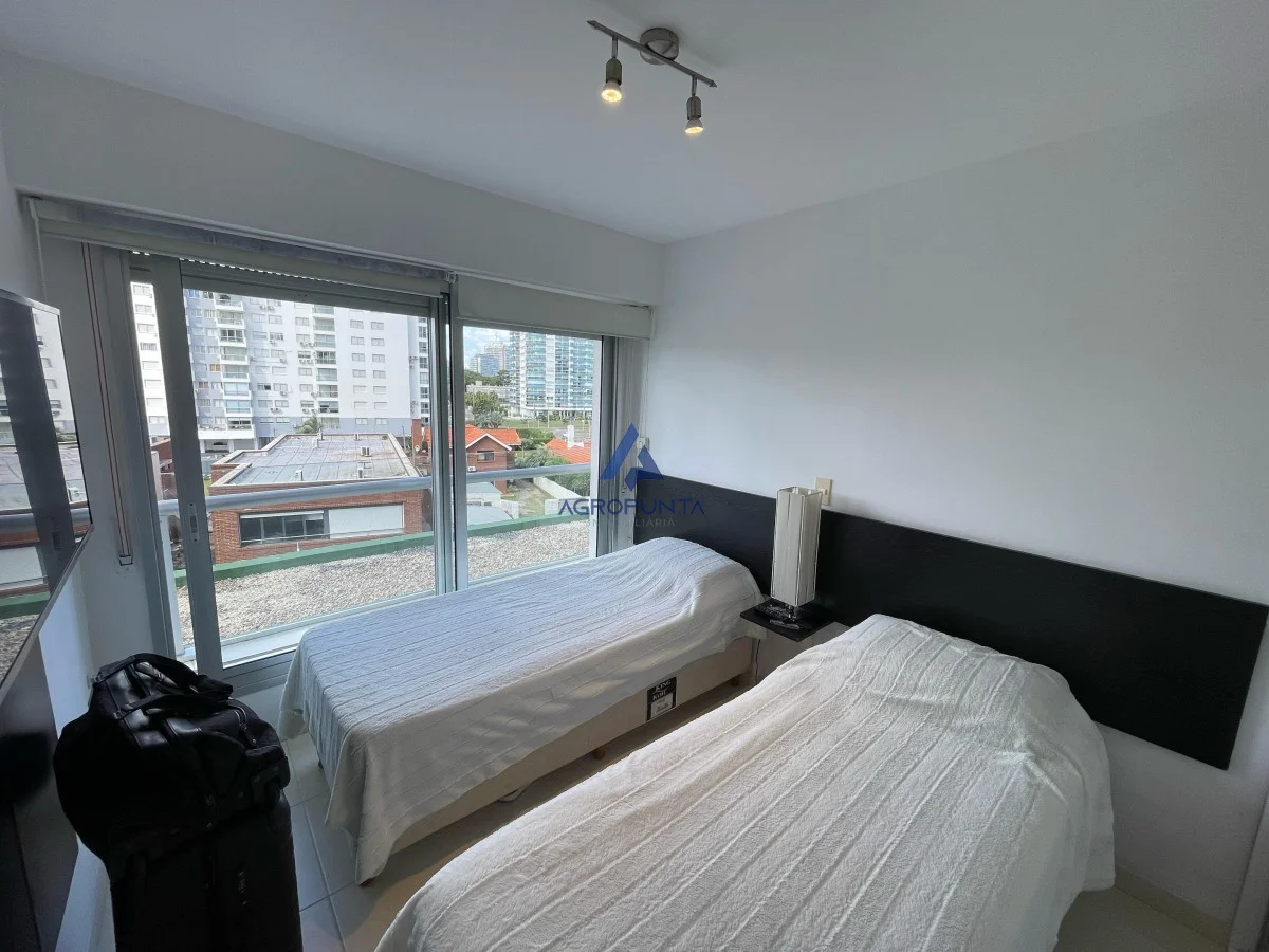Ubicacion: Parada 4 de playa Mansa a 100 metros del mar. Descripcion: 2 Dormitorios, 3 Baños 2 en suit, toilette, living, comedor, cocina. Totalmente equipado. Garage, piscina, sauna, vigilancia, servicios de mucama, gimnacio, play room, canchas, servicio de playa y parillero. . Referencia Interna : Tera-1258