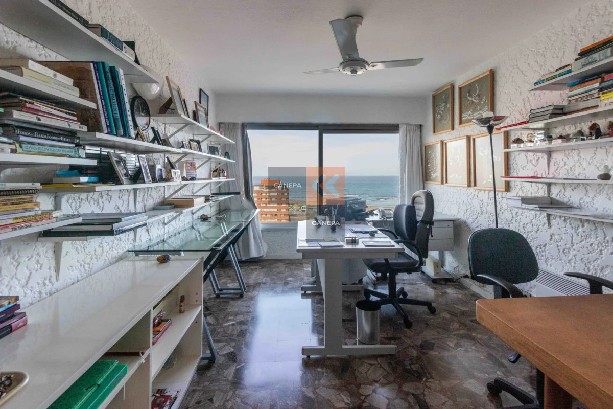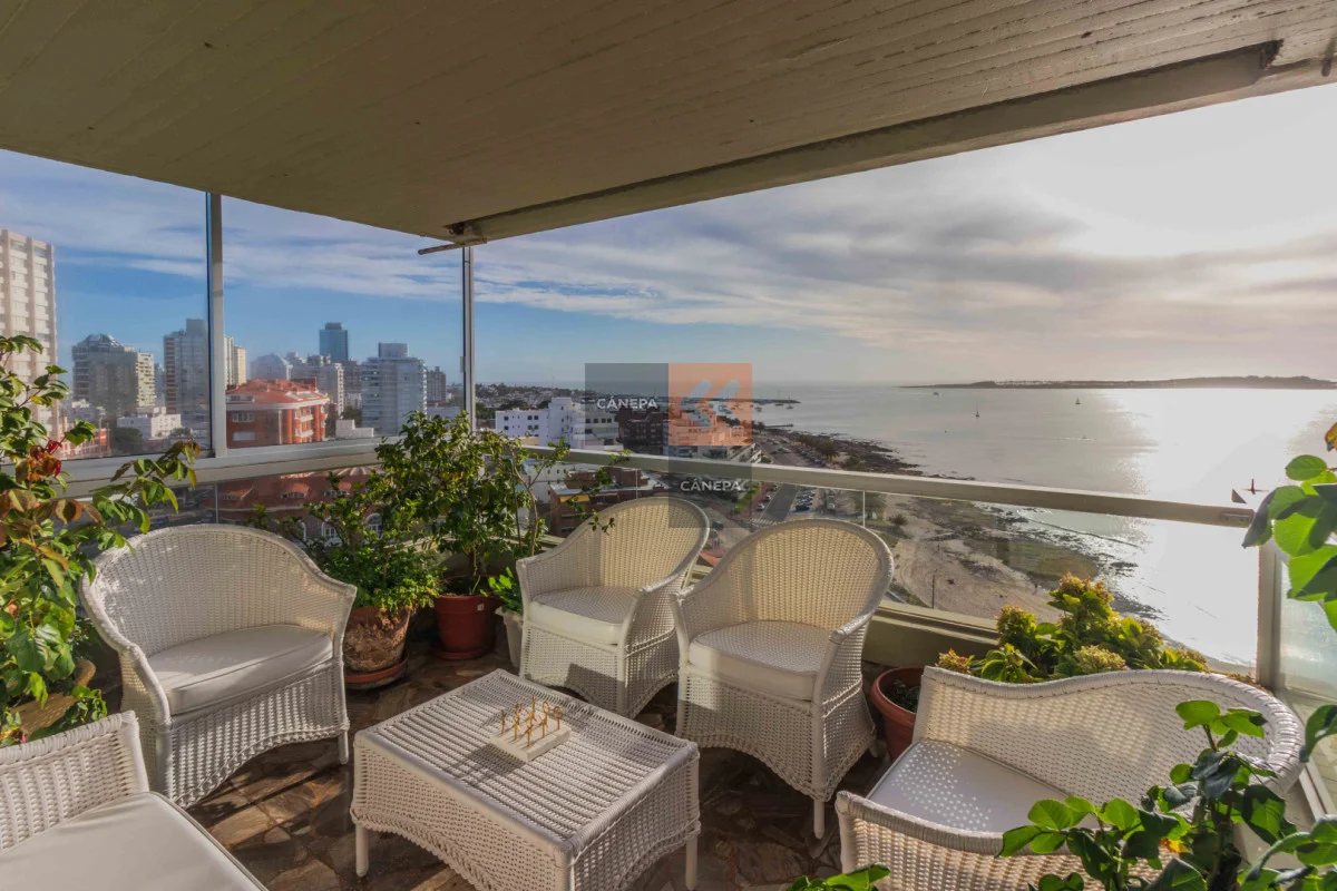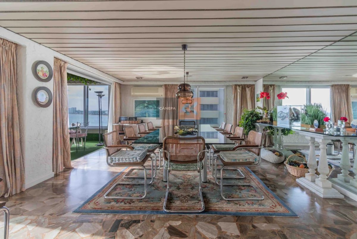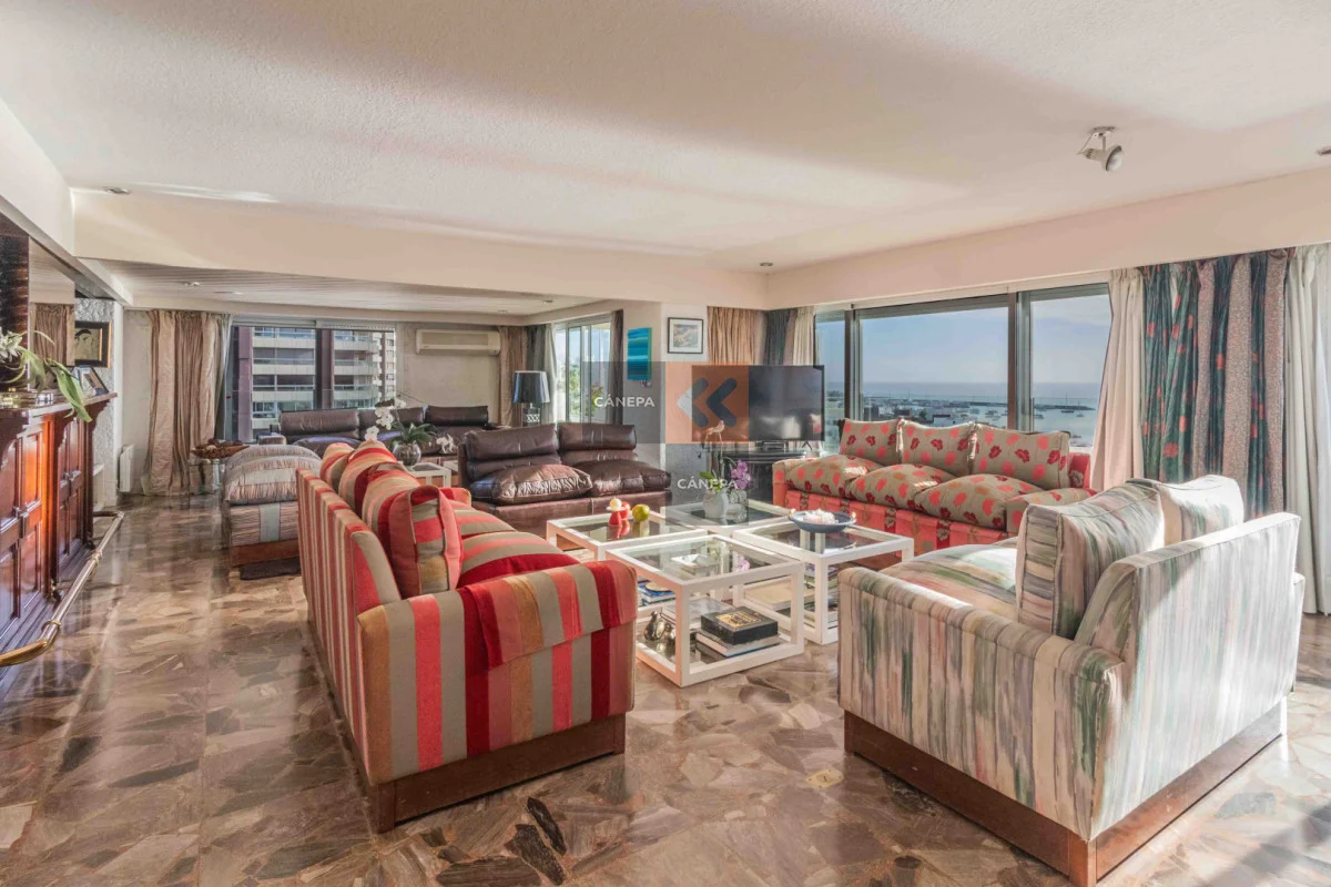 Apartamento en piso alto con excelente vista al mar Planta unificada en todo un piso Doble living con vista a la mansa, una de ellas hacia el lado del puerto y la otra hacia punta ballena Cuenta con estufa a leña y parrillero Toilette 6 dormitorios y 5 baños, 3 de ellos en suite Amplia cocina luminosa con comedor diario y lavadero Toilette Dos dependencias de servicios Losa Radiante sectorizada Garaje para 3 autos Referencia Interna : Tera-17420