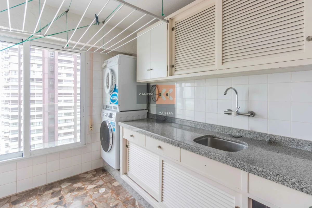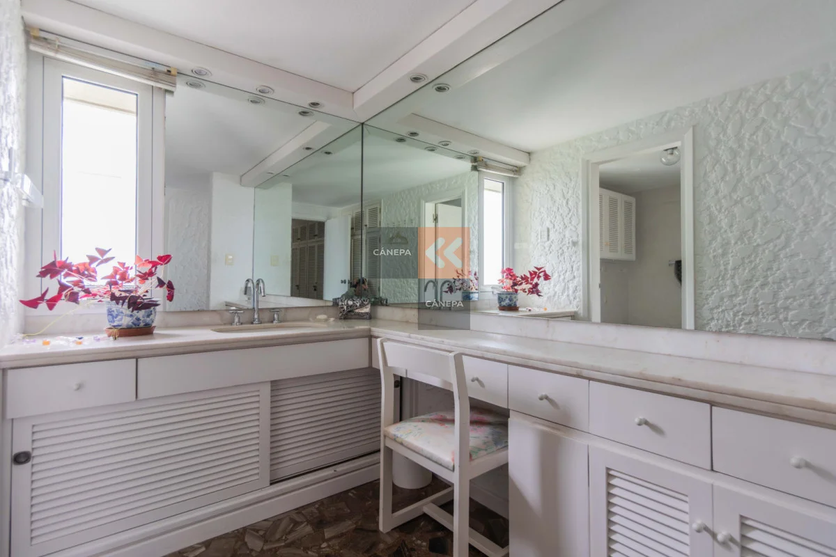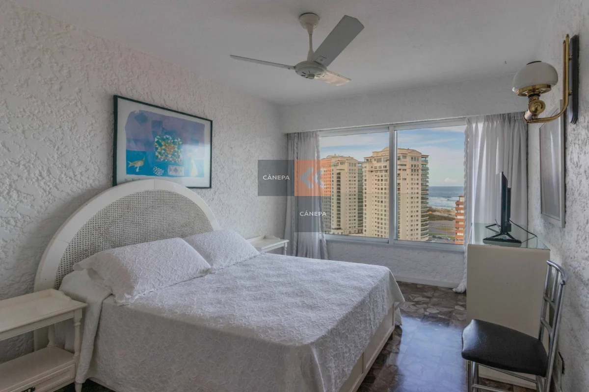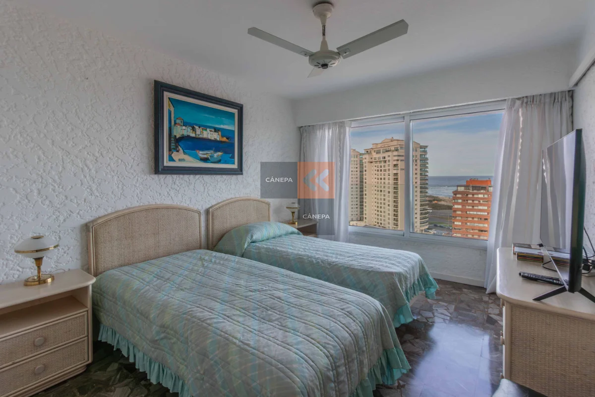 Apartamento en piso alto con excelente vista al mar Planta unificada en todo un piso Doble living con vista a la mansa, una de ellas hacia el lado del puerto y la otra hacia punta ballena Cuenta con estufa a leña y parrillero Toilette 6 dormitorios y 5 baños, 3 de ellos en suite Amplia cocina luminosa con comedor diario y lavadero Toilette Dos dependencias de servicios Losa Radiante sectorizada Garaje para 3 autos Referencia Interna : Tera-17420