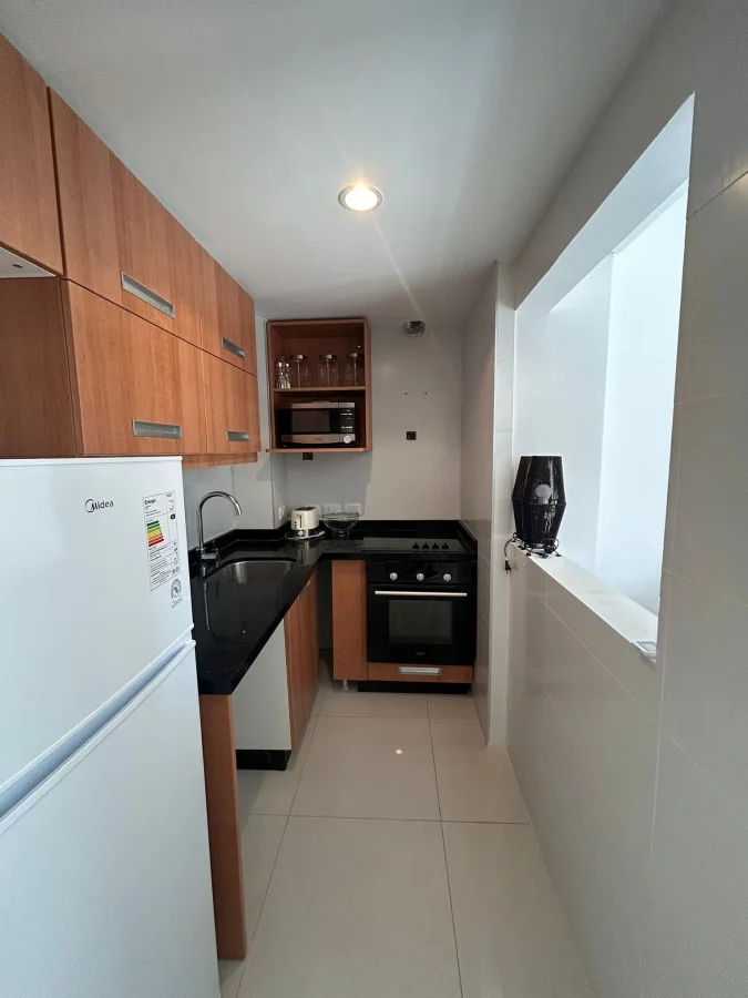 La unidad cuenta con una cocina funcional, ideal para preparar tus platos favoritos mientras contemplas el horizonte. Su diseño acogedor y luminoso te permitirá disfrutar de cada rincón, convirtiéndolo en el lugar perfecto para relajarte después de un día en la playa.