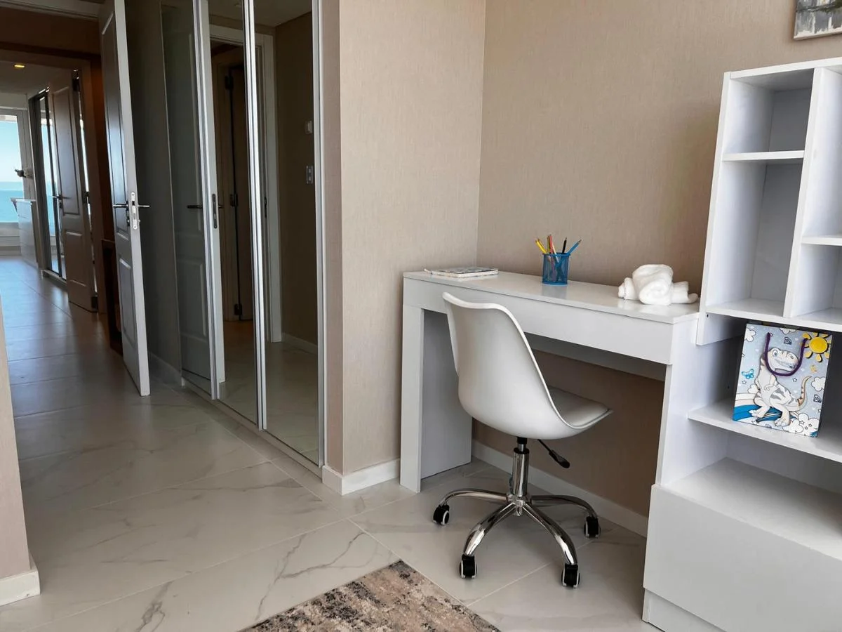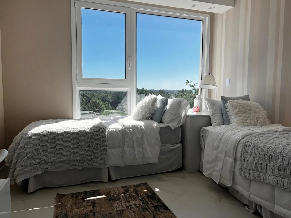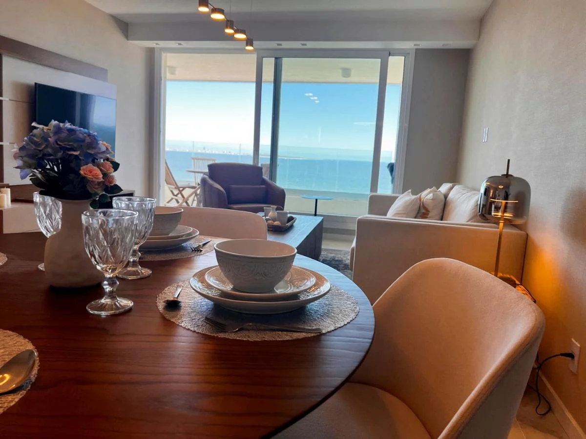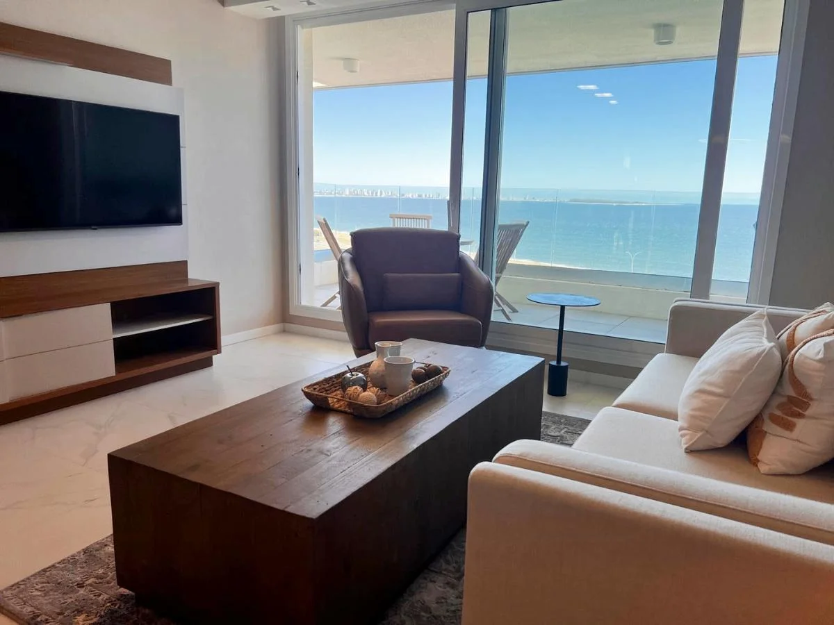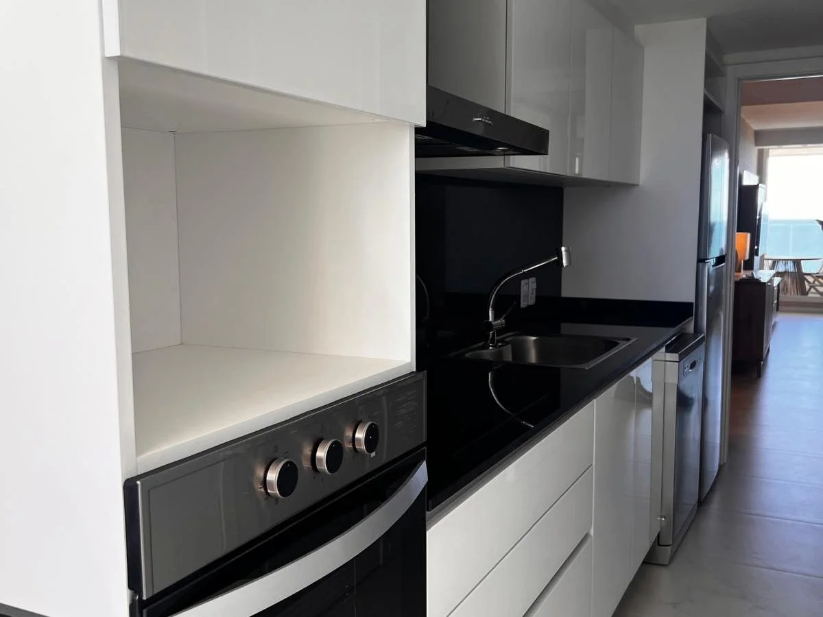 El apartamento cuenta con 2 dormitorios, el principal con vestidor y ambos en suite. Además cuenta con 1 baño social que asegura tanto la comodidad de sus habitantes como la de visitantes. El dormitorio principal da hacia el frente, con lo cual la vista franca al mar es algo increíble. La cocina cuenta con amoblamiento moderno dentro de los que se incluyen los electrodomésticos: horno, campana, anafe. Termotanque también esta incluido.