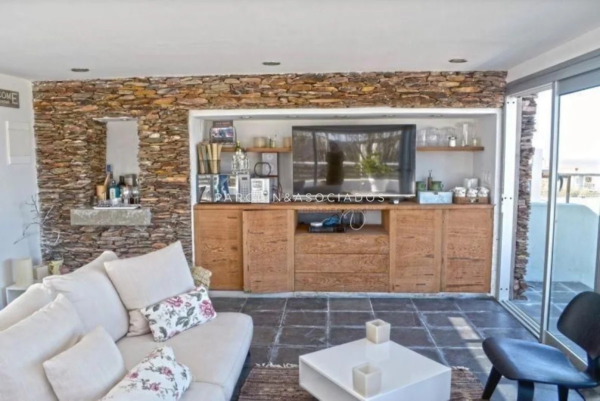 - Living comedor con acceso a terraza con camastros
