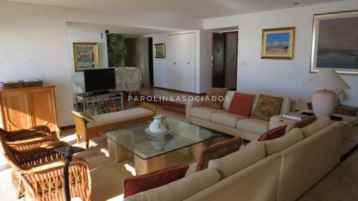 Apartamento en primera línea sobre el mar con vistas excepcionales desde todos los ambientes: - Gran living comedor con ventanales y terraza alargada - Vista directa al mar y a los atardeceres - 3 dormitorios, 2 baños (principal en suite) - Amplia cocina con lavadero - Dependencia de servicio - 2 cocheras + espacio exterior para estacionamiento - Edificio de gran categoría, un apartamento por planta - Piscina y gimnasio Parolin and Asociados Propiedades Consulte con nuestros asesores Referencia Interna : Tera-2108