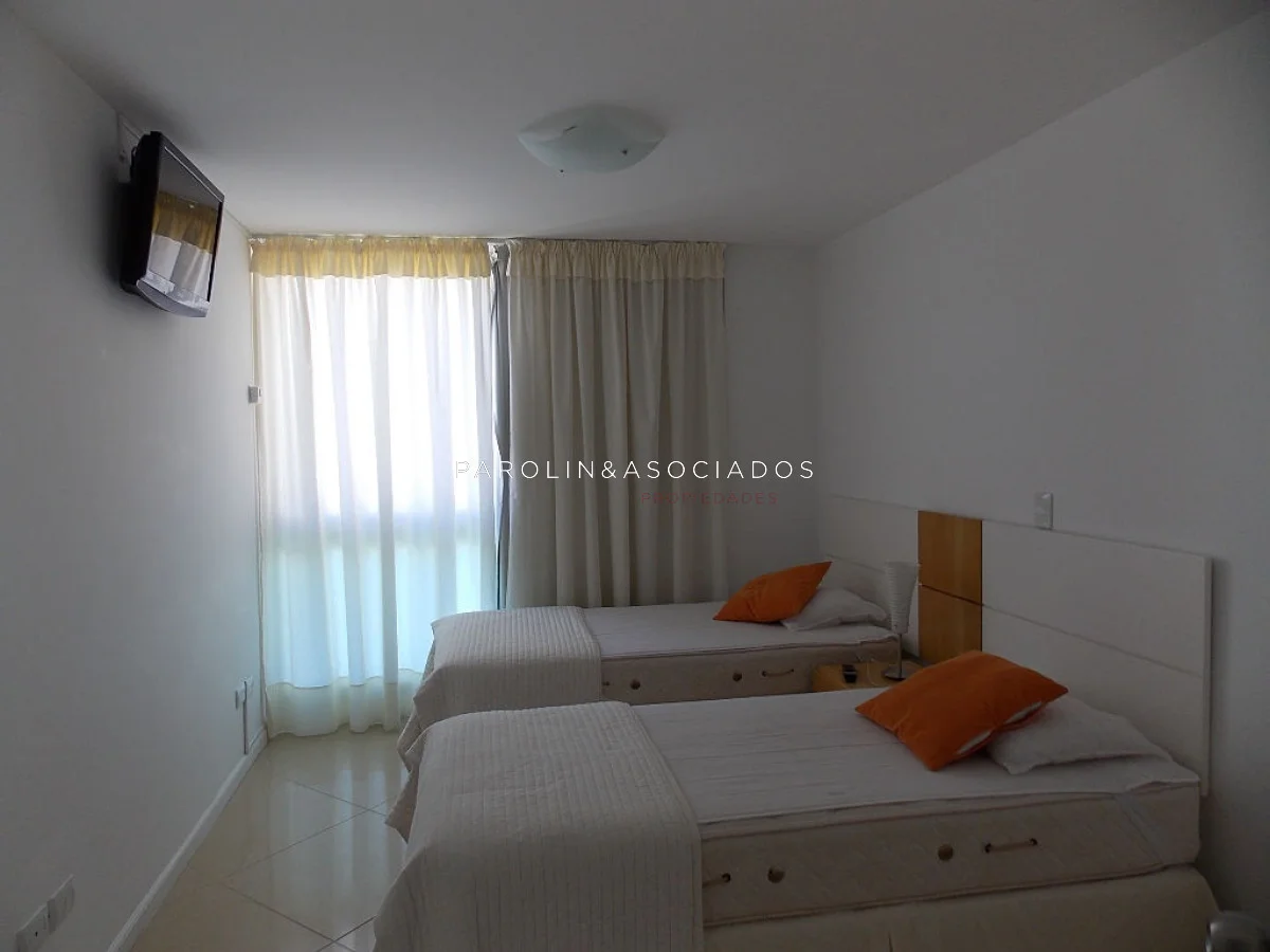 Apartamento en Punta del Este – A 100 metros del mar * 3 dormitorios, 2 en suite * Dependencia de servicio con baño * Aire acondicionado * Parrilla a gas * Servicio de mucama, piscina, servicio de playa y parrilleros * Garaje para 1 auto * WiFi y TV cable Parolin and Asociados Propiedades Consulte con nuestros asesores Referencia Interna : Tera-2163