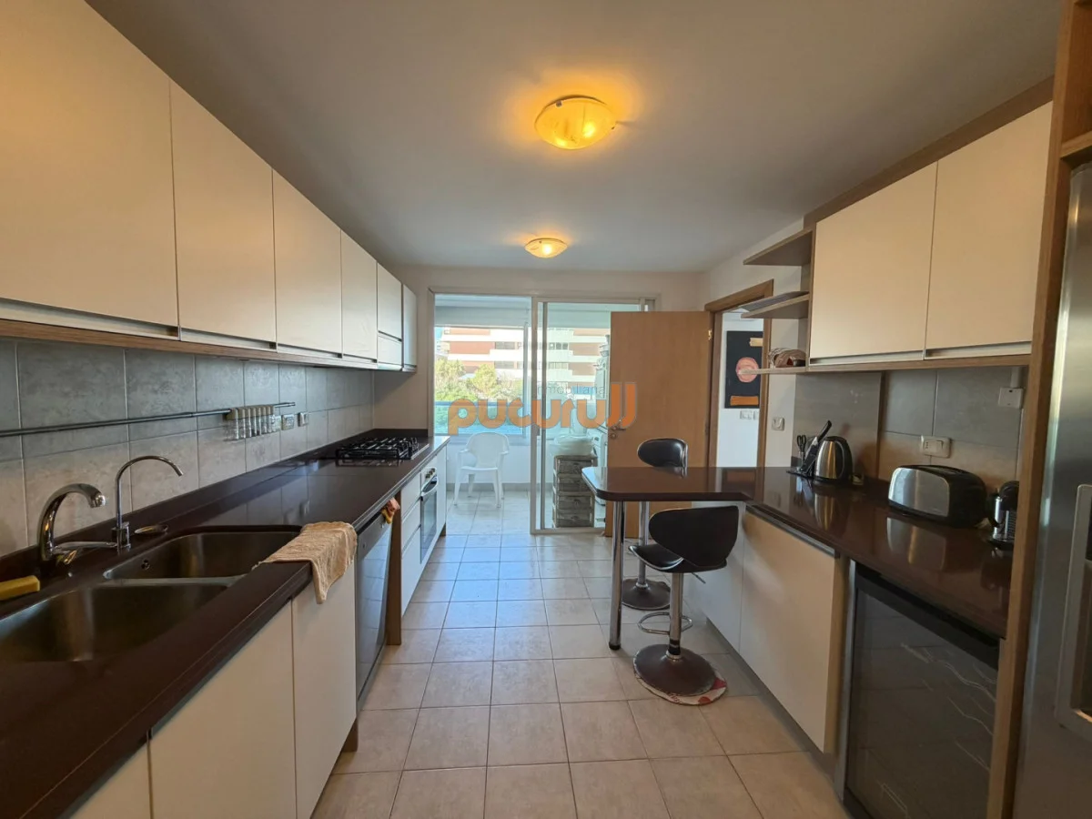 Amplio living comedor, gran balcón con parrillero propio, baño social, tres dormitorios, dos baños completos, dormitorios principal en suite, baño social, cómoda cocina con terraza lavadero, servicio con baño, garage, loza radiante sectorizada, cortinas de enrollar eléctricas en toda la planta, servicios.