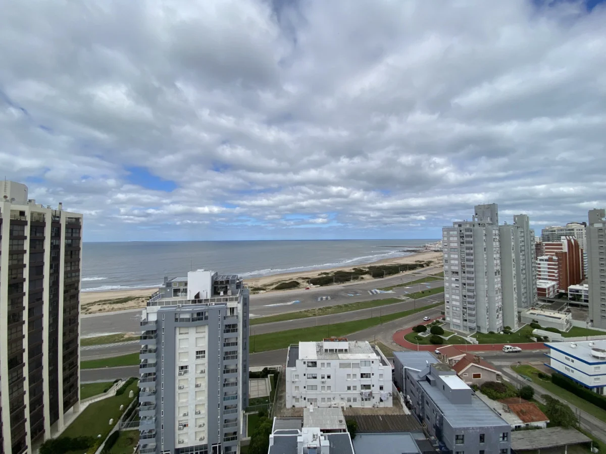 La unidad cuenta con 2 Dormitorios, 2 Baños, 1 en Suite. Cocina Integrada, amplio Living Comedor con Vista al Mar a la playa brava y mansa, salida a Balcón abierto.