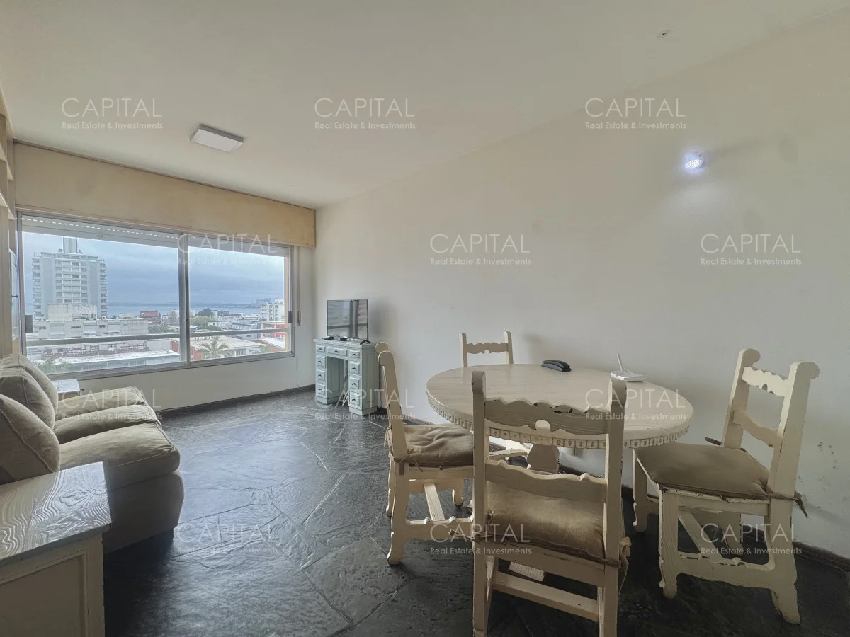 Apartamento en Venta en el emblemático edificio Michelangelo, ubicado en la peninsula de Punta del Este, cerca de todos los servicios. La unidad cuenta con dormitorio y medio, un baño, cocina definida y living comedor. Tanto el dormitorio como living comedor ofrecen vista al mar. Buena orientación solar, para disfrutar los mejores atardeceres que ofrece el balneario. Unidad con garaje incluido en subsuelo. El edificio ofrece como servicios: recepción 24 horas, piscina exterior climatizada, servicio de mucamas diario, mantenimiento. Por mas información consulte con nuestros asesores. Referencia Interna : Tera-38351