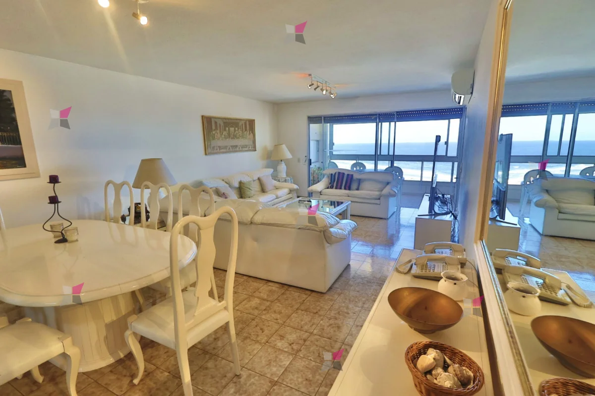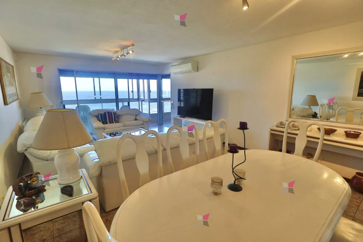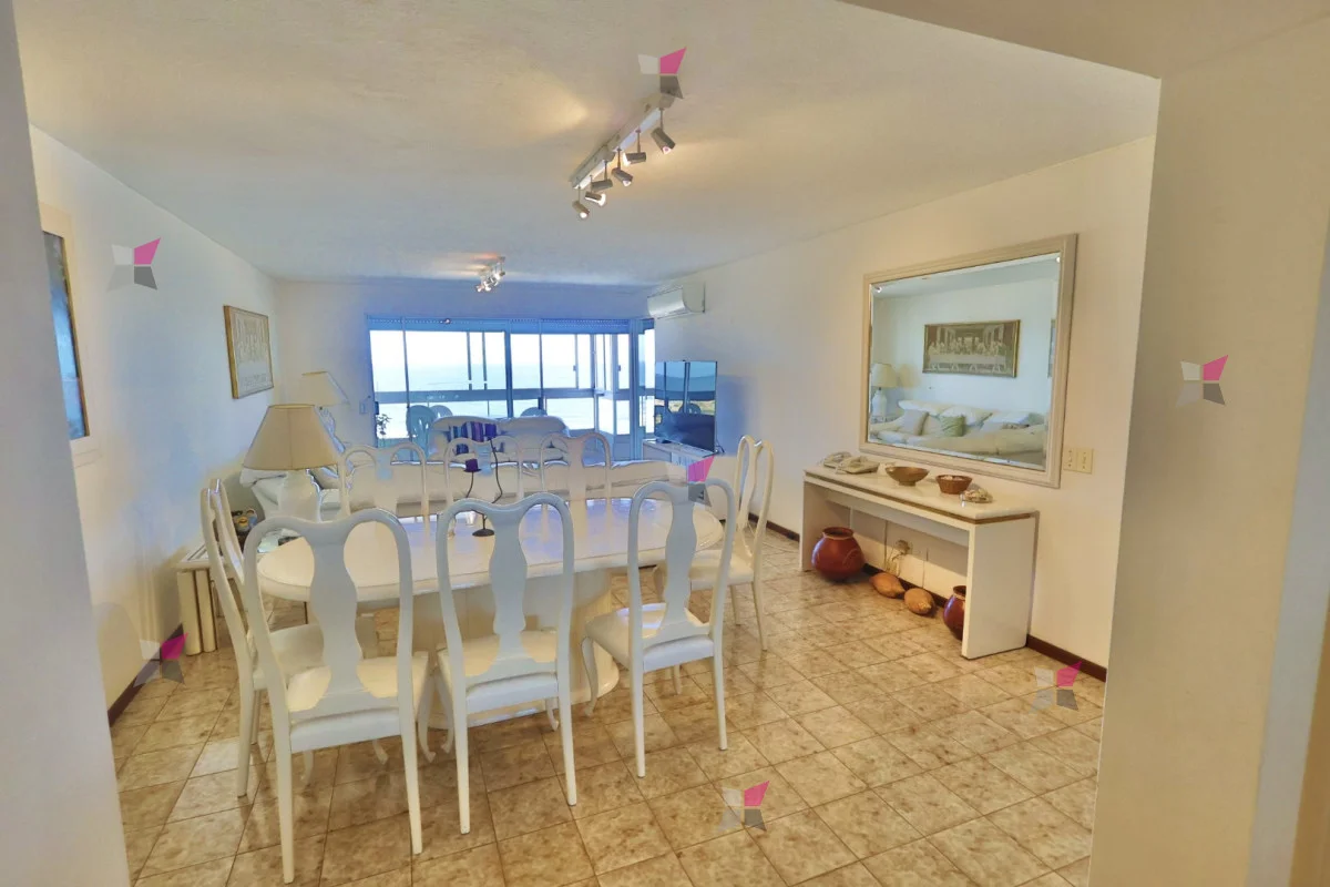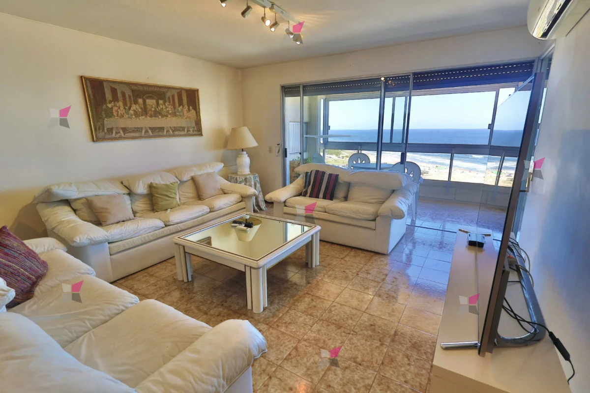 El living comedor, amplio y luminoso, ofrece vista al mar y salida a un balcón cerrado con parrillero propio, ideal para disfrutar durante todo el año.
