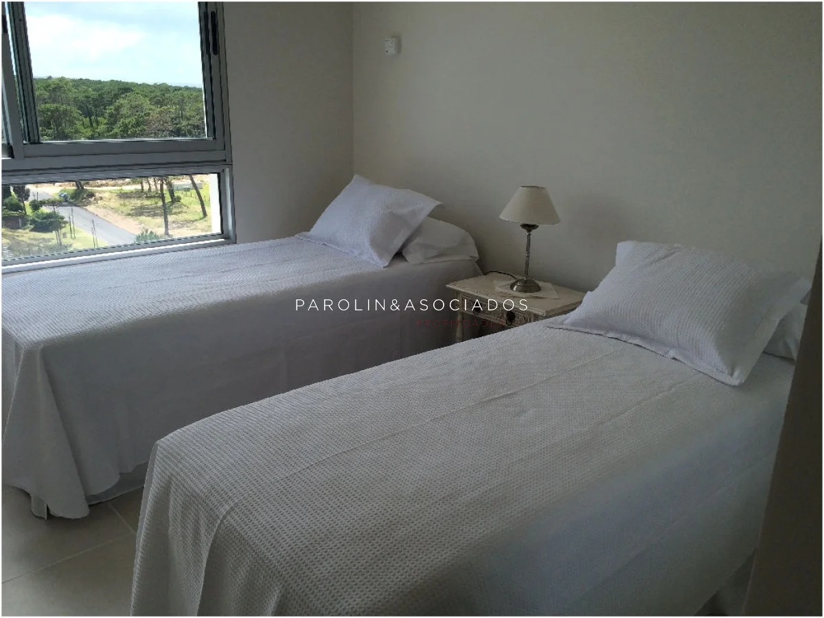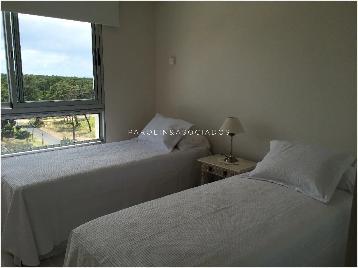 Apartamento en Roosevelt - Punta del Este Ubicado a 200 metros del mar, este apartamento ofrece: - 3 dormitorios, cada uno con su baño privado (3 suites), con capacidad para 6 personas en 5 camas. - Cocina definida, living y comedor separados. - Equipamiento incluido: heladera con freezer, TV, placard en dormitorios y cocina, horno. Entre sus amenidades destacan: - Recepción. - Sauna seco y húmedo. - Lavandería. - Barbacoa. - Club House. - Cancha de tenis. - Alarma. - Garaje. - Cancha de golf. Superficie total: 100 m2. Para más información y consultas, comuníquese con nuestros asesores en Parolin and Asociados. Referencia Interna : Tera-8937