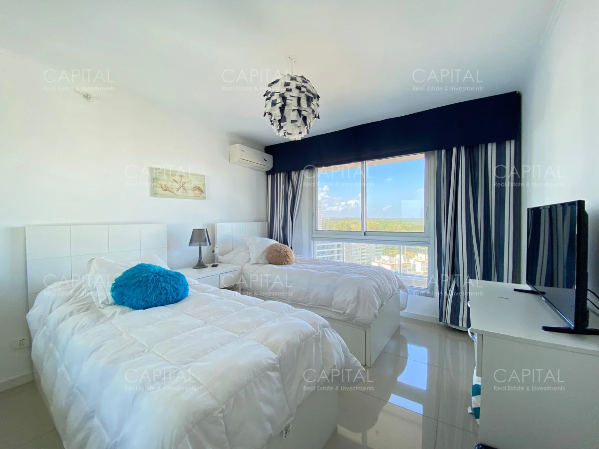 La unidad cuenta con dos dormitorios y dos baños, dormitorio principal en suite con vestidor.