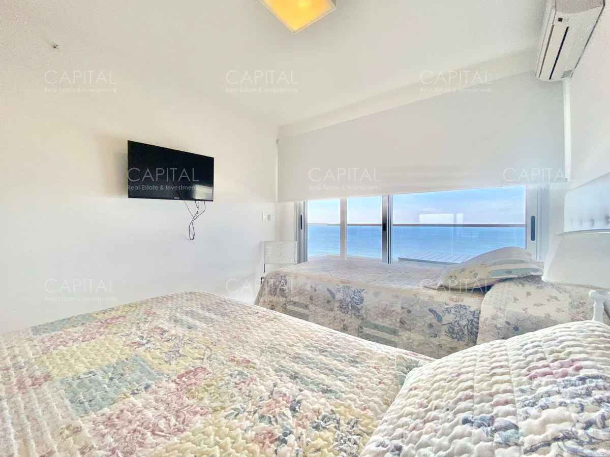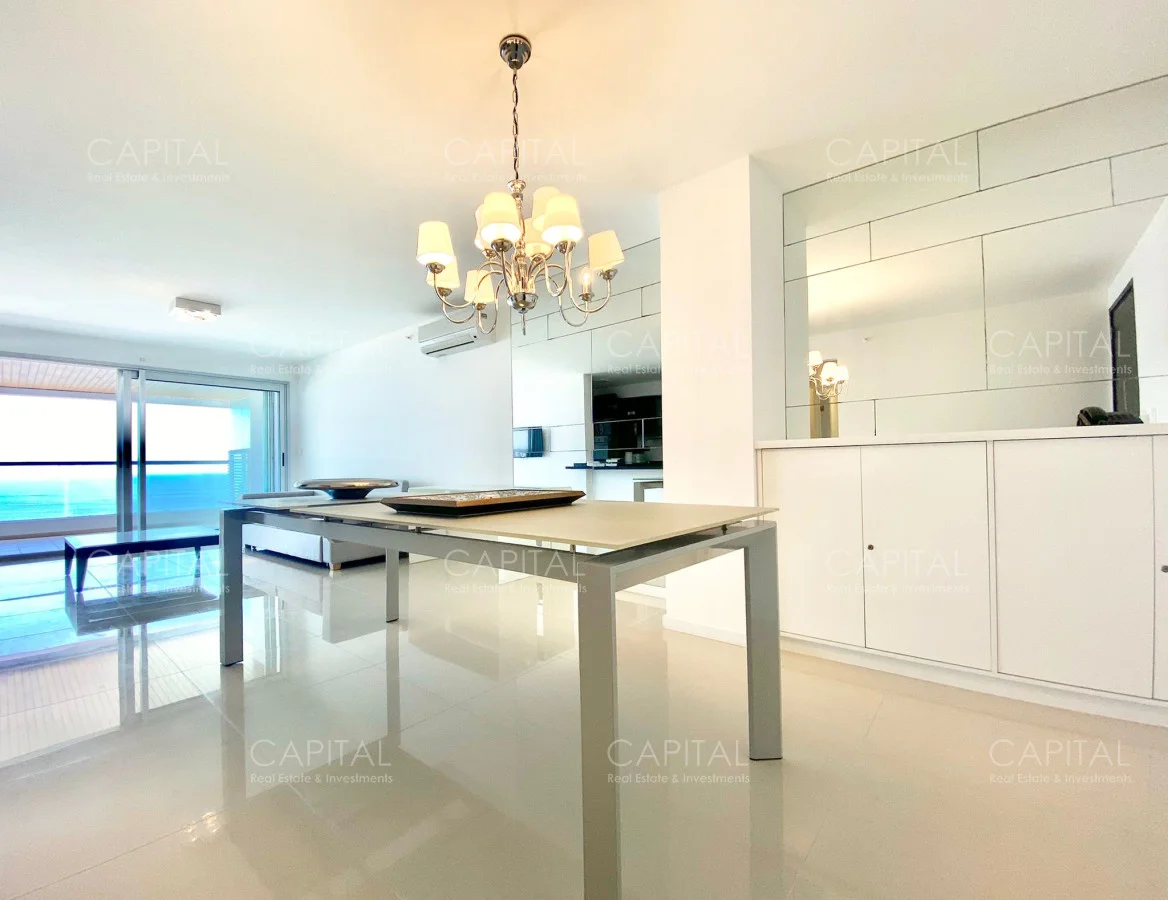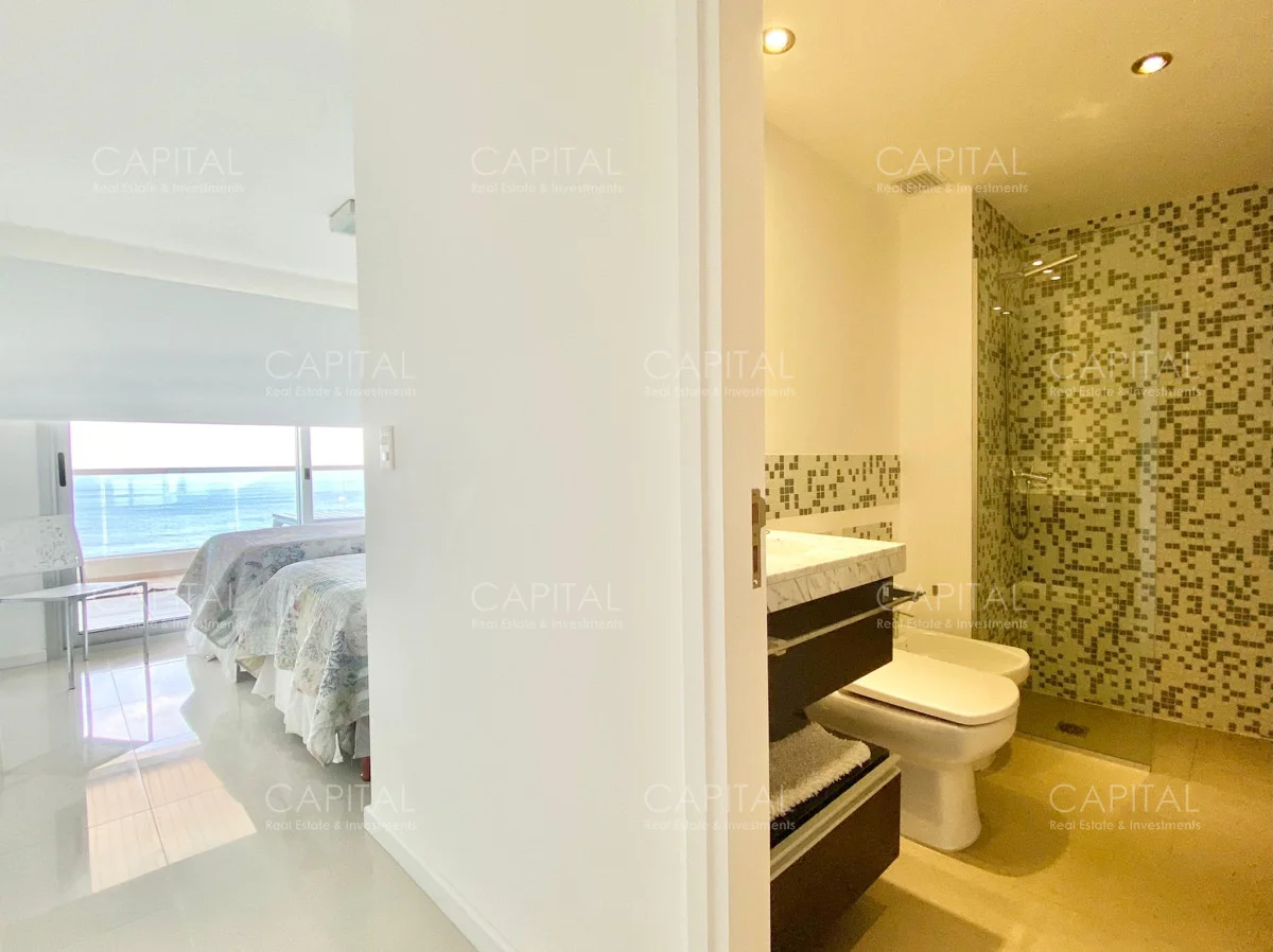 La unidad consta de un amplio living comedor con salida al extenso balcón con vista directa al mar, cocina con barra y lavadero, toillete y 3 dormitorios, principal con vestidor y baño en suite, otro con baño en suite y un baño completo correspondiente a la tercer habitación.