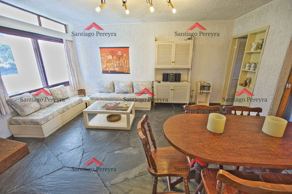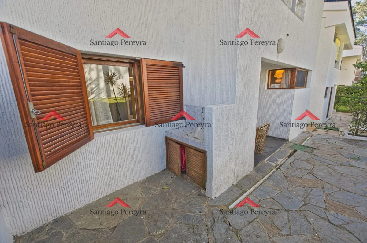 Apartamento tipo casa, muy próximo a universidad y sanatorios de Punta del Este. Cuenta con patio privado con parrillero propio. Acepta mascotas. Comodidades: - Living comedor - Estufa a leña - Cocina - 2 Dormitorios (1 suite) - 2 Baños - Patio - Parrillero - Estacionamiento Amenities: Piscina abierta, Vigilancia, Jardines parquizados, y Serv. mucama 1 vez por semana Referencia Interna : Tera-7290