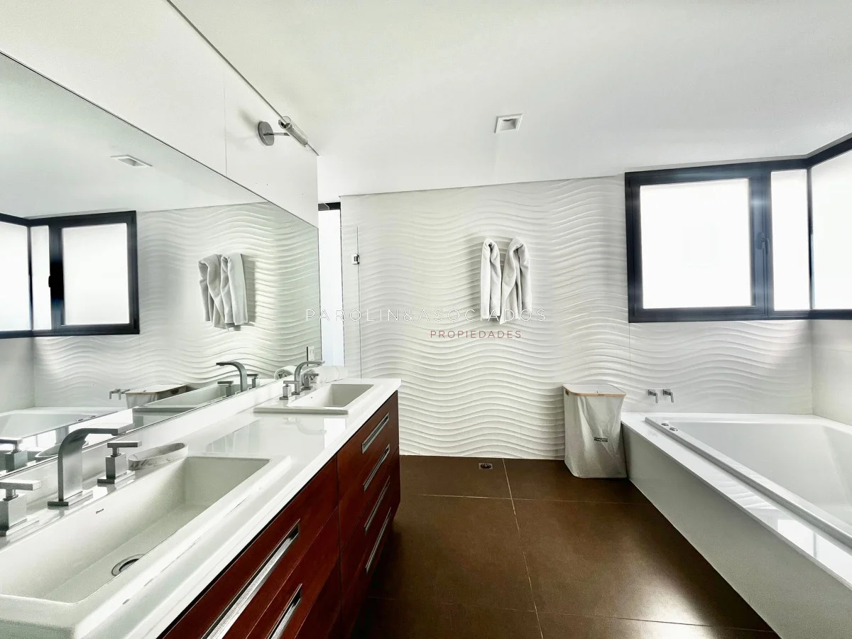 Propiedad sofisticada, arquitectura diseñada por el arquitecto Carlos OTT convierte el concepto base de un edificio en un ambiguo proyecto de 5 exclusivos departamentos (uno por piso) sobre la rambla donde cada uno tiene piscina propia con vistas espectaculares al puerto y toda la Playa Mansa.