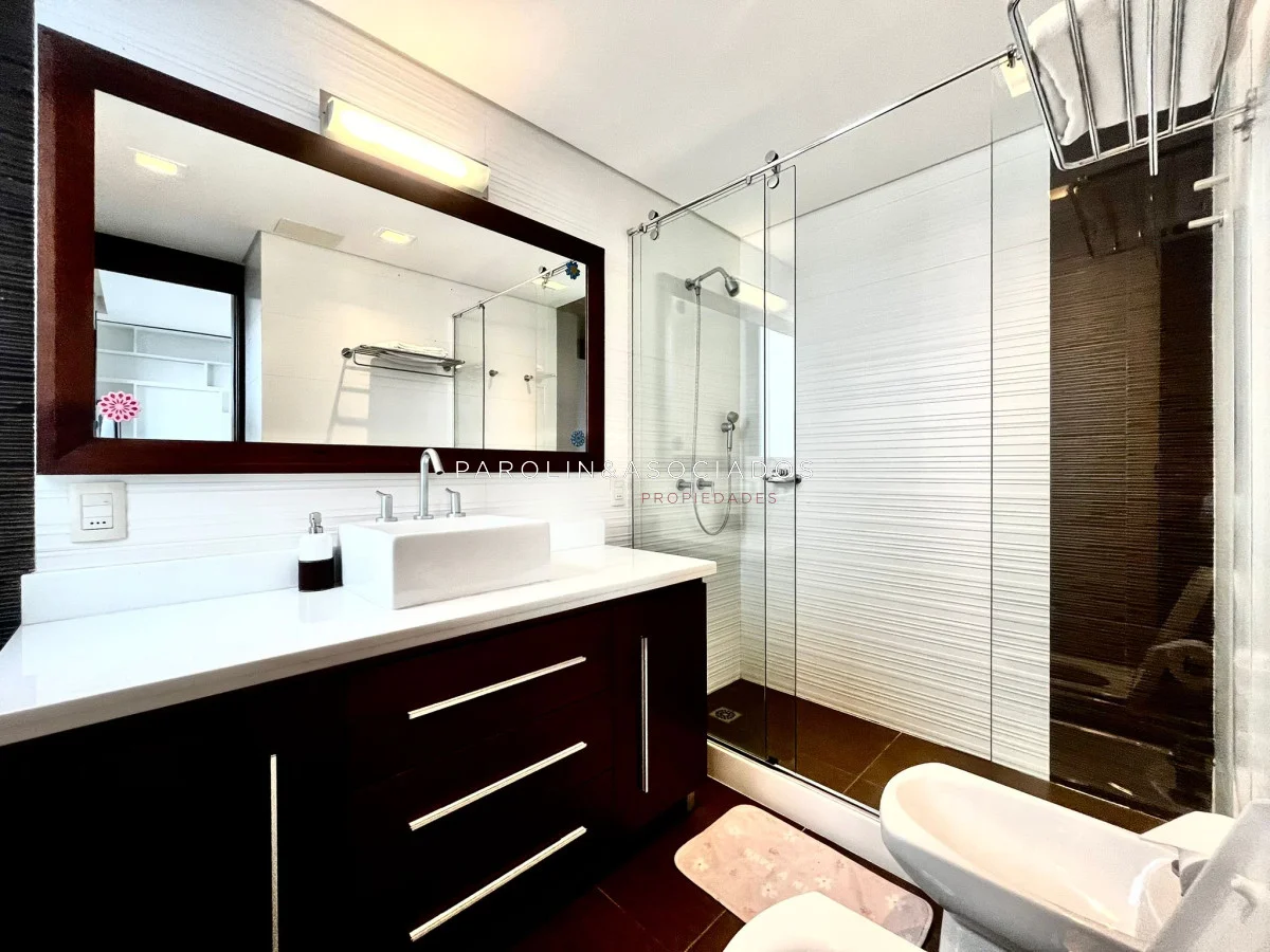 Este apartamento al entrar directo del ascensor recibe con un espacioso living-comedor, rodeado de grandes ventanas que permiten ver toda la bahía y desde donde se puede acceder a una terraza con piscina propia, orientada hacia el living y el mar encontramos su master suite con vestidor walk-in y baño con hidromasaje y ducha
