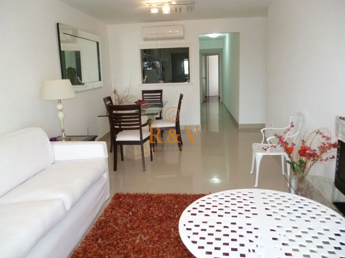 Impecable apto, totalmente reciclado, en primera línea de playa Mansa. Living comedor con terraza, tres dormitorios , uno en suite, dos baños, cocina , cochera cubierta.