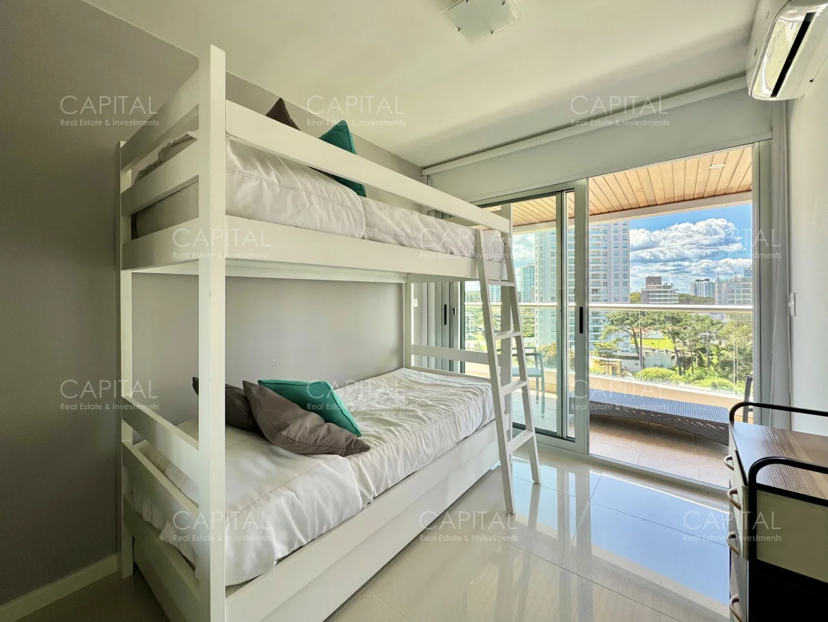 Apartamento ubicado a 50 metros del mar en Playa Brava, Punta del Este El mismo cuenta con tres dormitorios 2 Baños y 1 Suites. Amplia cocina totalmente equipada, con lavadero. Garage en subsuelo. Amenities : SERV. LAVADERO - PLAY ROOM - GIMNASIO - PISCINA ABIERTA - PISCINA ABIERTA PCHICOS - SERV. DE MUCAMA - SALA DE MASAJES - SPA - SAUNA húmedo - SAUNA seco - SERVICIO DE PLAYA - MICROCINE - , Servicio de Mucamas , Servicio de Playa , Sauna ,Piscina Interior Exterior Superficie Propia : 149 m2 Superficie Total : 149 m2 Consulte con nuestros asesores Referencia Interna : Tera-37080